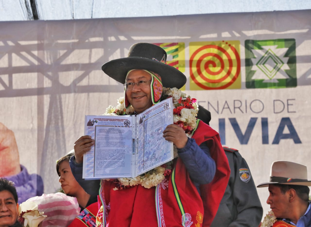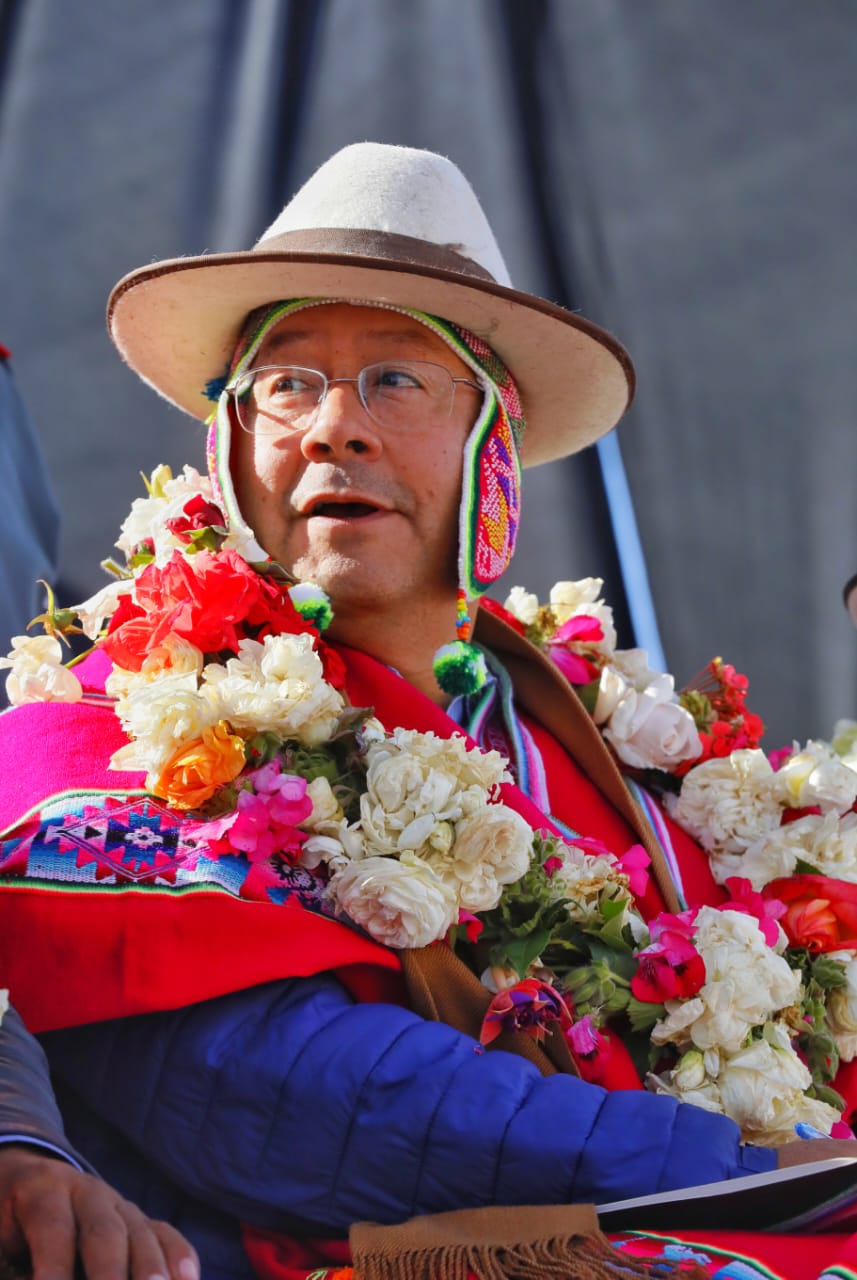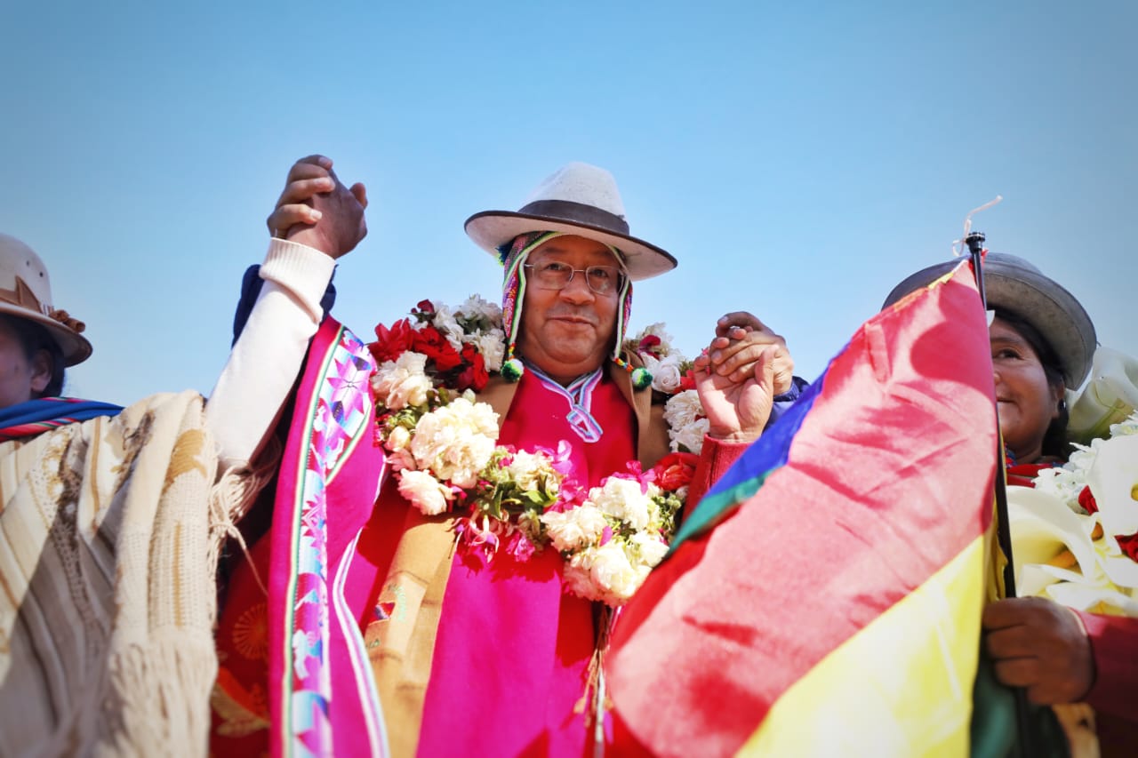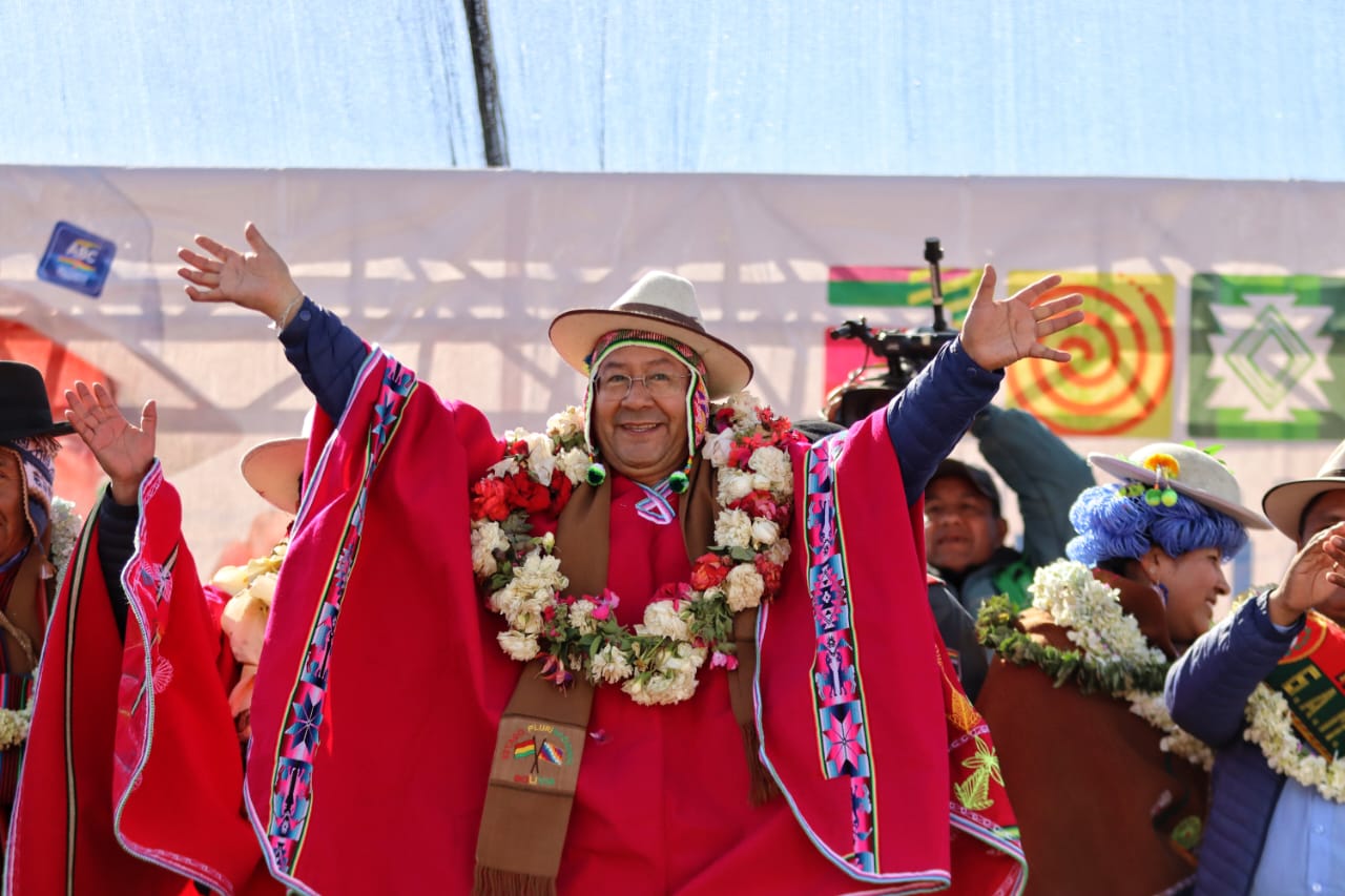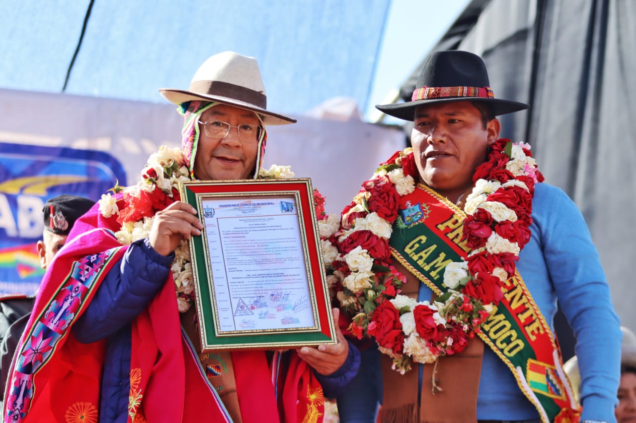 Presidente del Estado Luis Arce, dio inicio a la construcción de la carretera Escoma - Pacobamba, con el colocado de la piedra fundamental