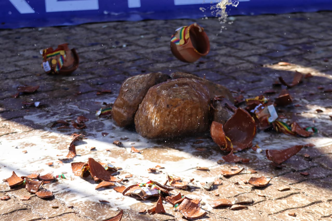 El presidente del Estado Luis Arce, dio inicio a la construcción de la carretera Escoma - Pacobamba, con el colocado de la piedra fundamental. Fotos: Comunicación presidencial