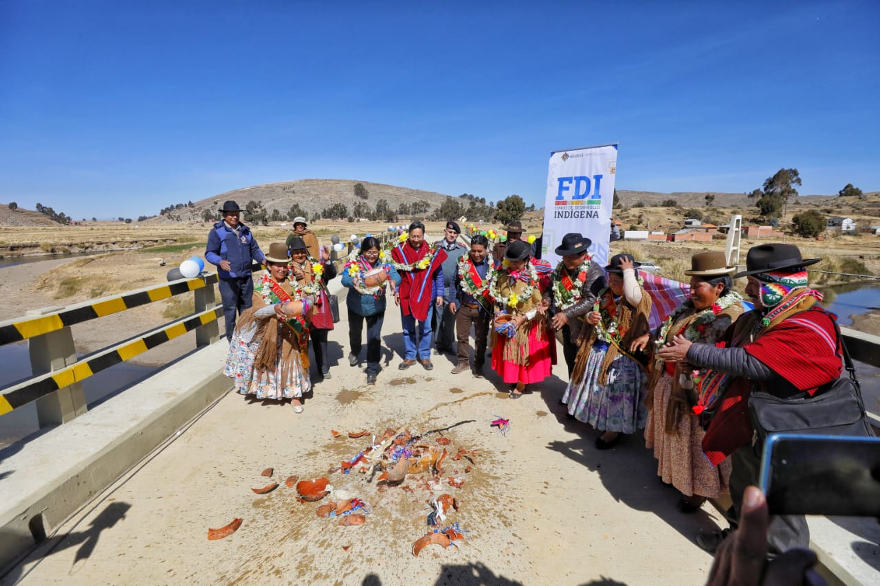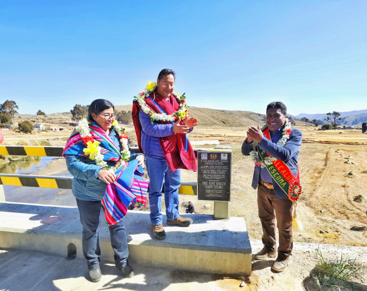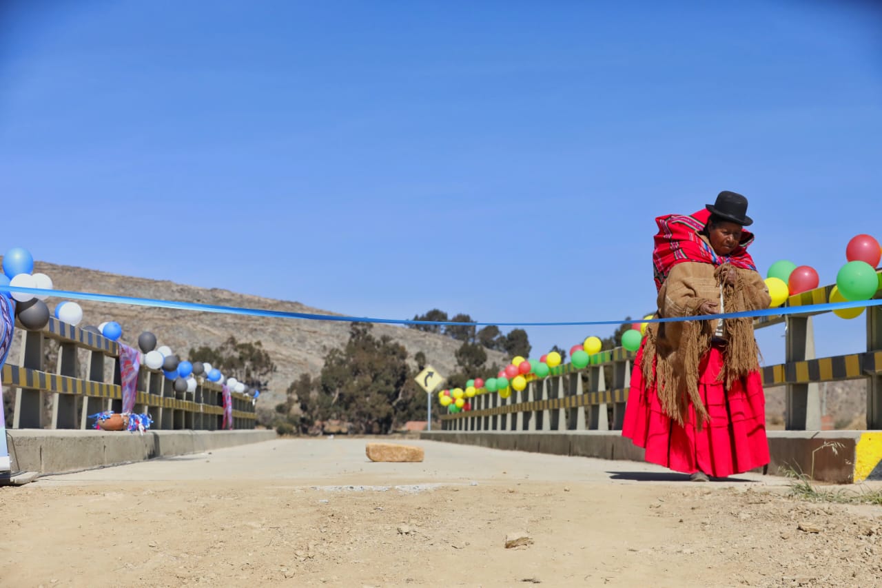 Presidente del Estado Luis Arce, entrega puente vehicular en la comunidad Ticohaya del municipio de Escoma, La Paz