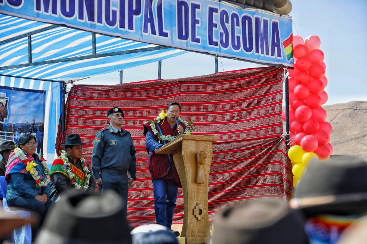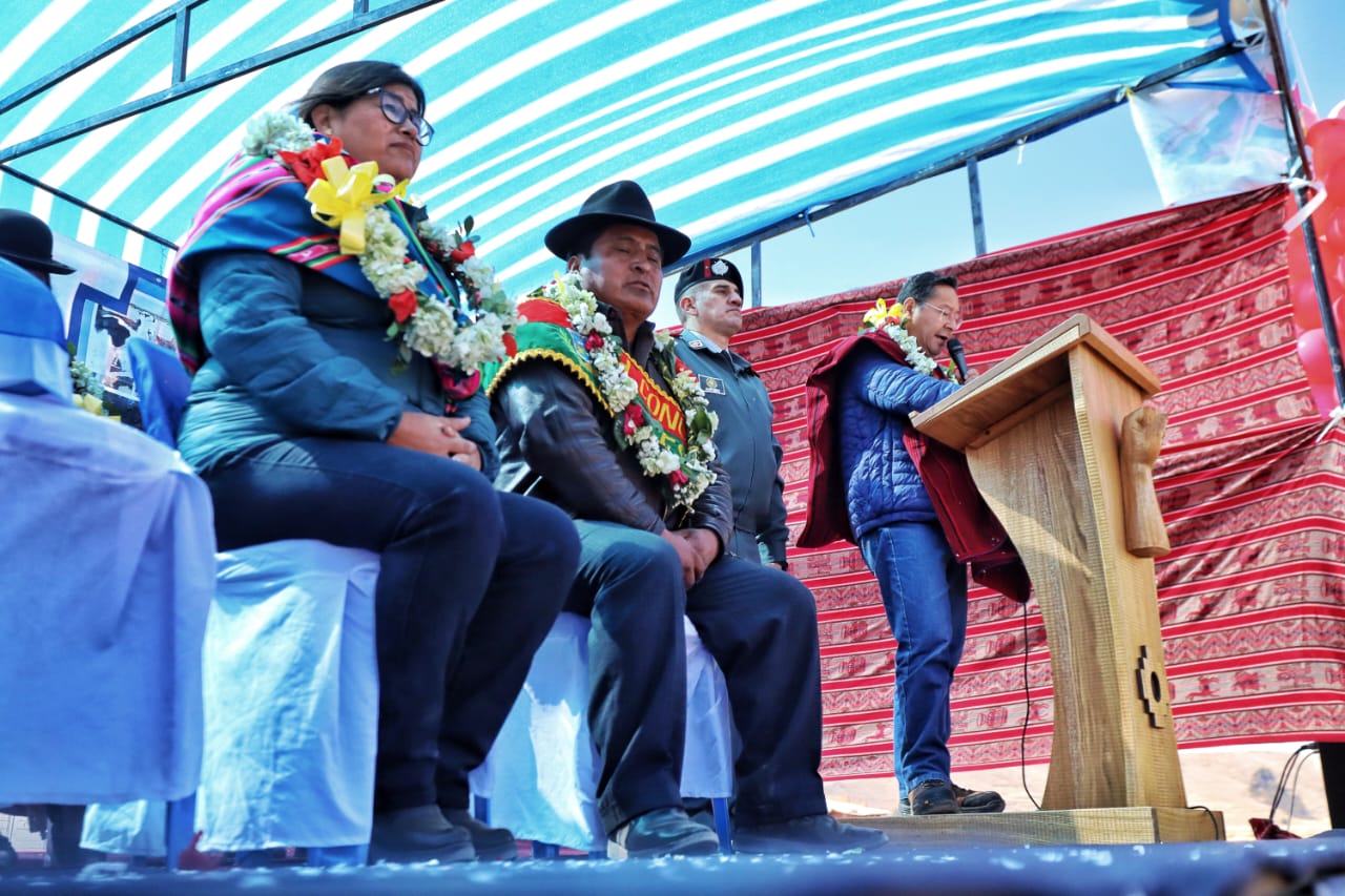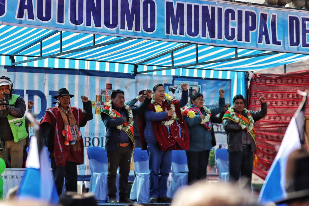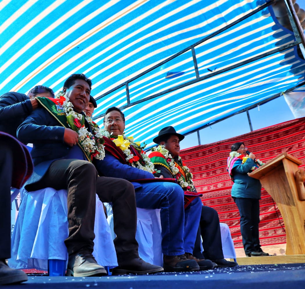 Presidente del Estado Luis Arce, entrega puente vehicular en la comunidad Ticohaya del municipio de Escoma, La Paz. Fuente: Comunicación Presidencial