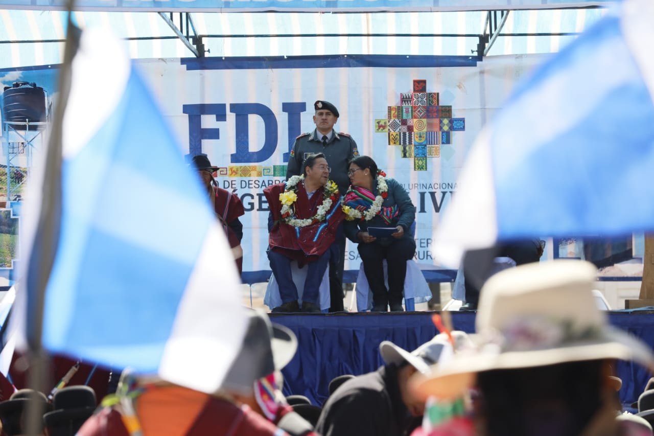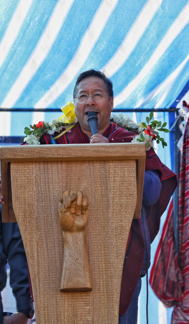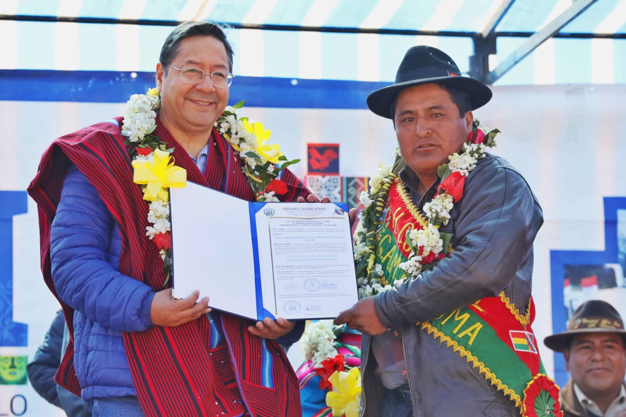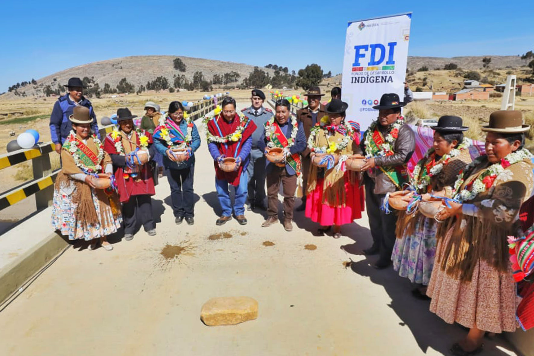 Presidente del Estado Luis Arce, entrega puente vehicular en la comunidad Ticohaya del municipio de Escoma, La Paz. Fuente: Comunicación Presidencial