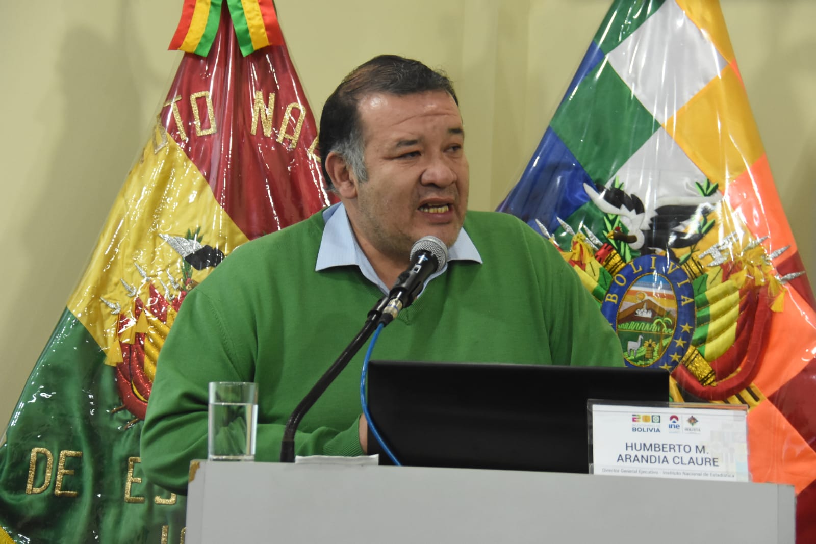 El director Nacional del Instituto Nacional de Estadística (INE), Humberto Arandia en conferencia de prensa en referencia al avance cartográfico censal. Fotos: Gonzalo Jallasi