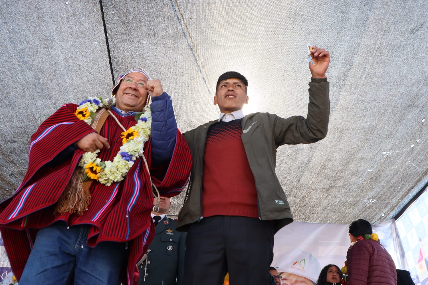 Presidente del Estado Luis Arce, entrega a la población viviendas cualitativas en el municipio de El Alto. Fuente: Comunicación Presidencial y Josué Cortéz/VICECOM