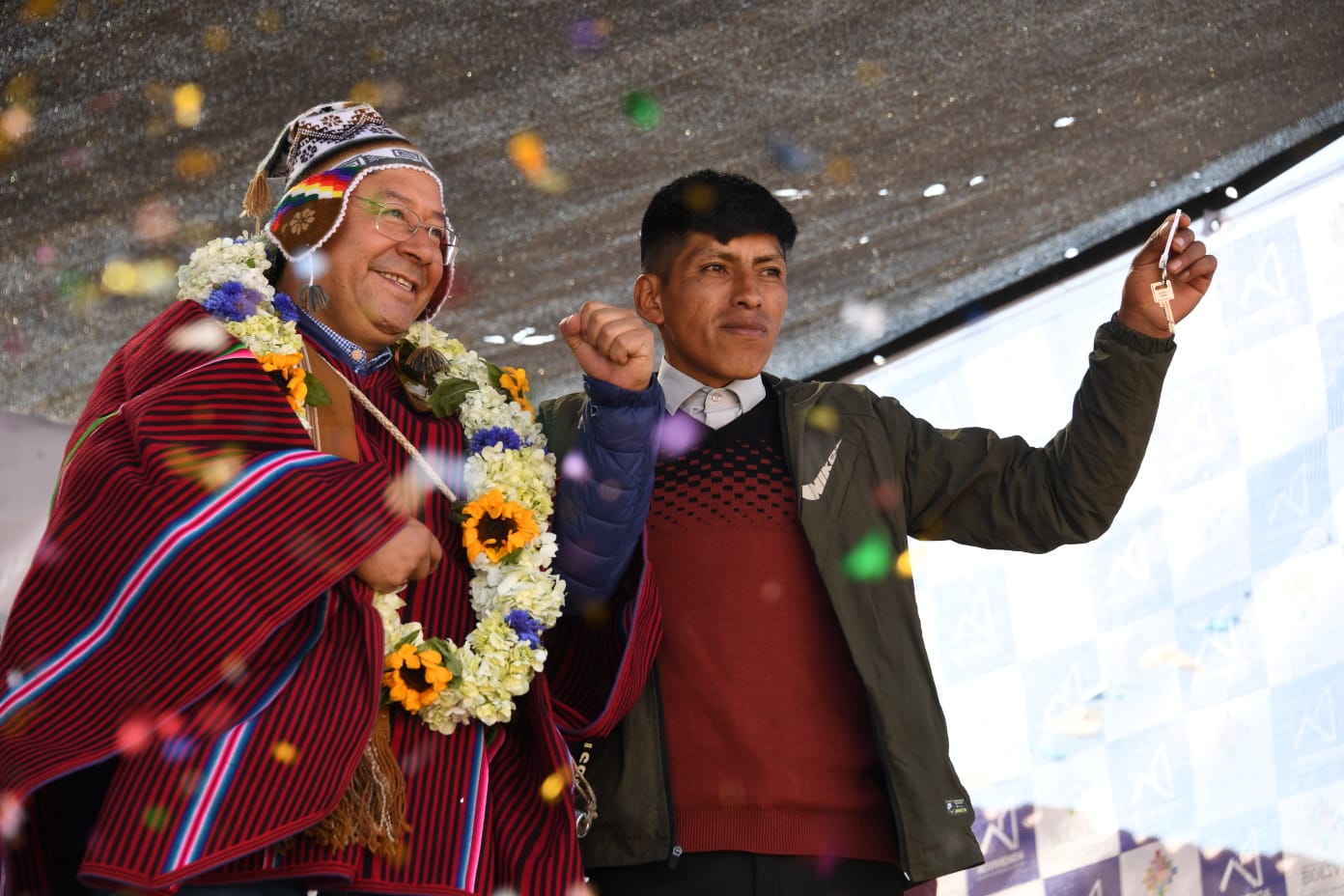 Presidente del Estado Luis Arce, entrega a la población viviendas cualitativas en el municipio de El Alto