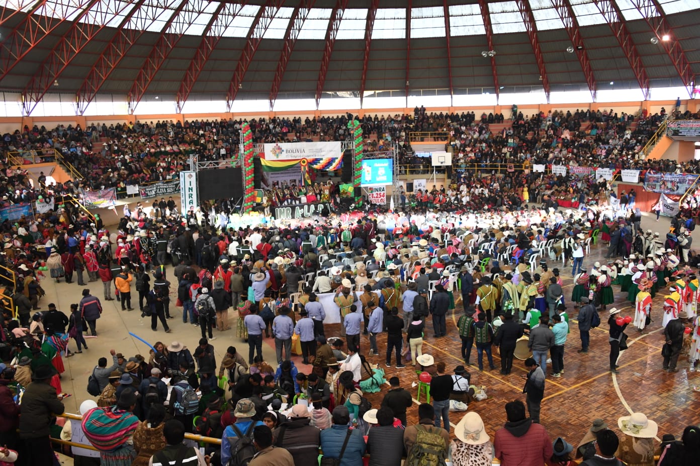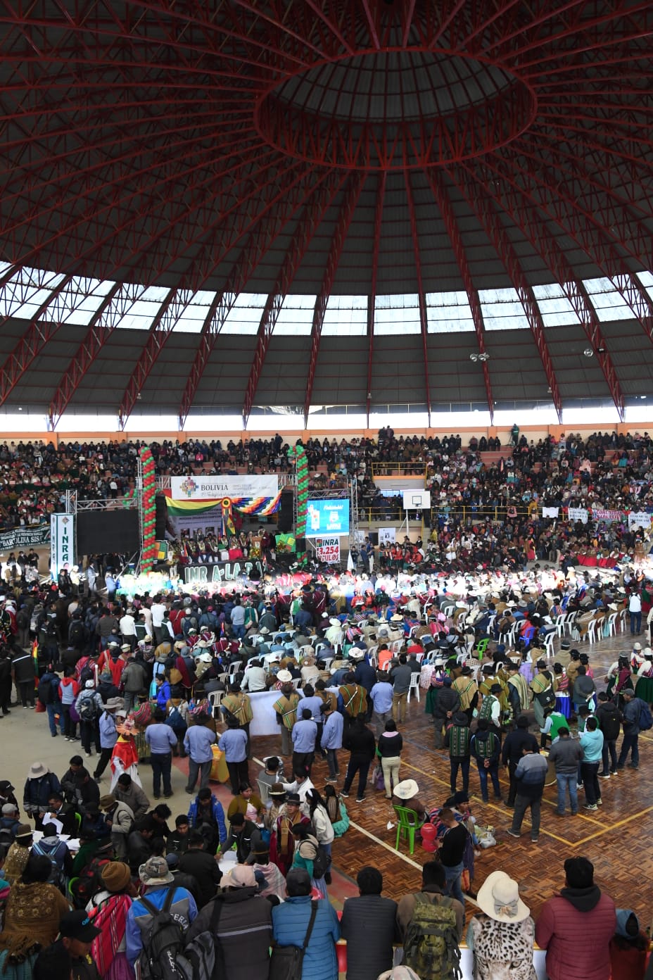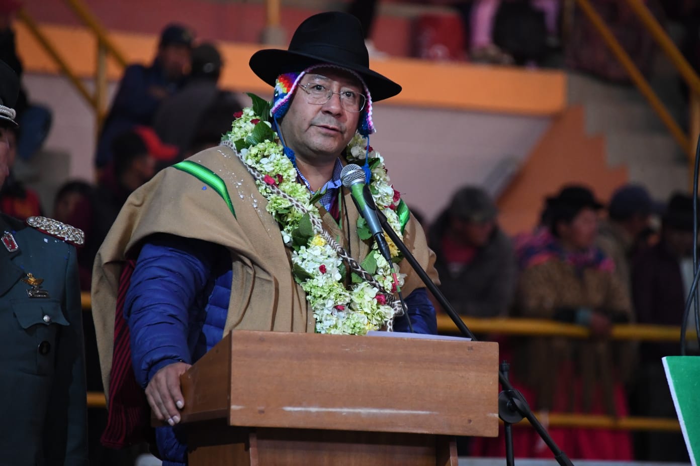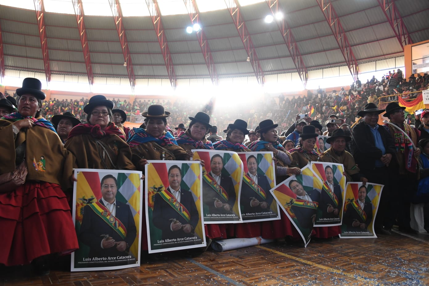 El Presidente del estado Luis Arce Catacora entrega 13.254 Títulos agrarios INRA en el mes aniversario del departamento de La Paz, coliseo cerrado Junthuma, Distrito 08, Ciudad de El alto. Fotos: Josué Cortéz