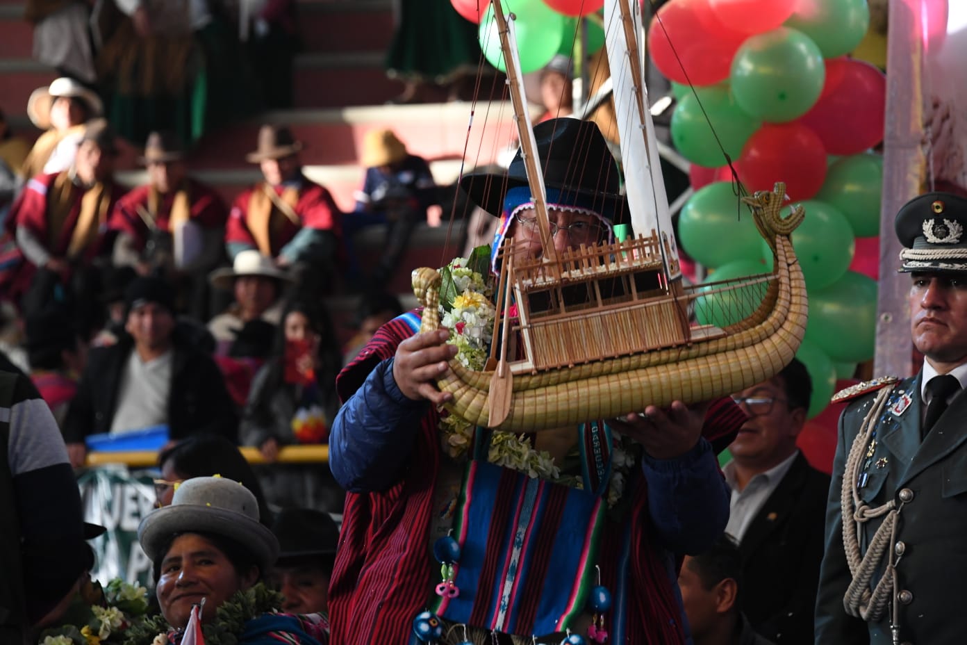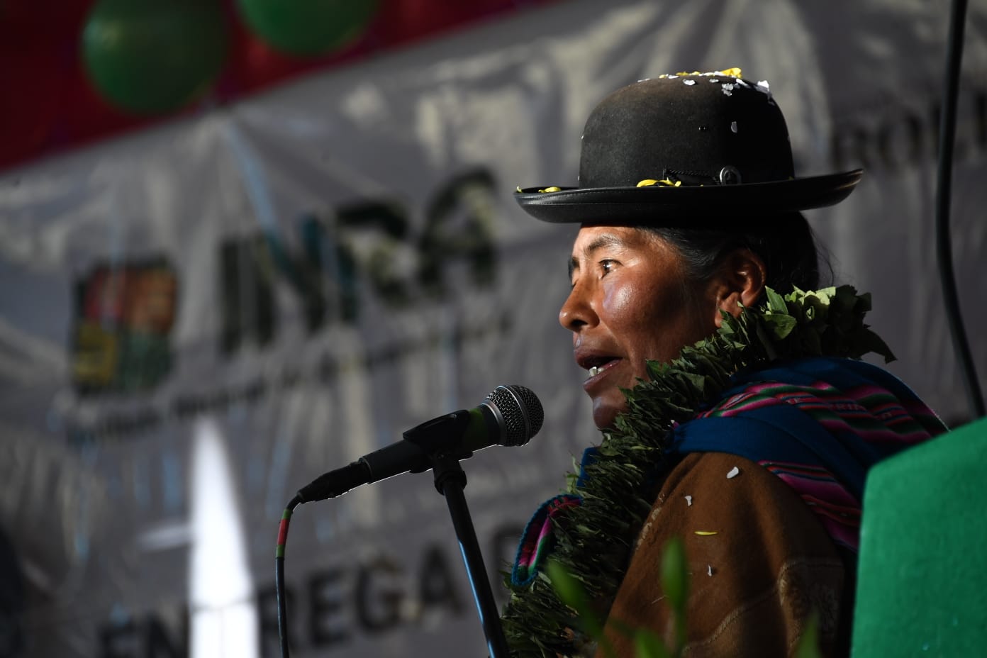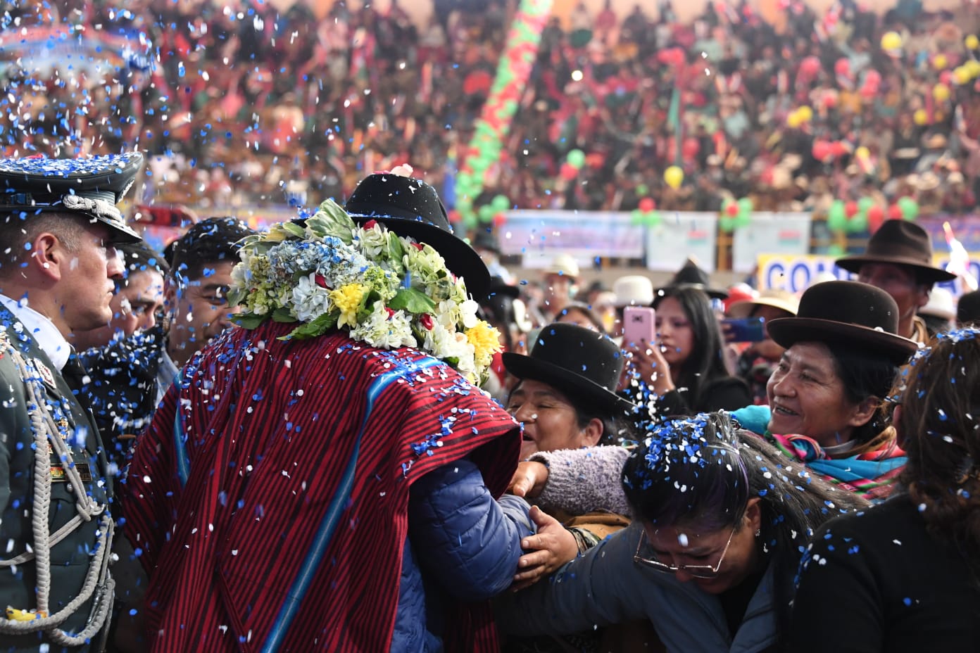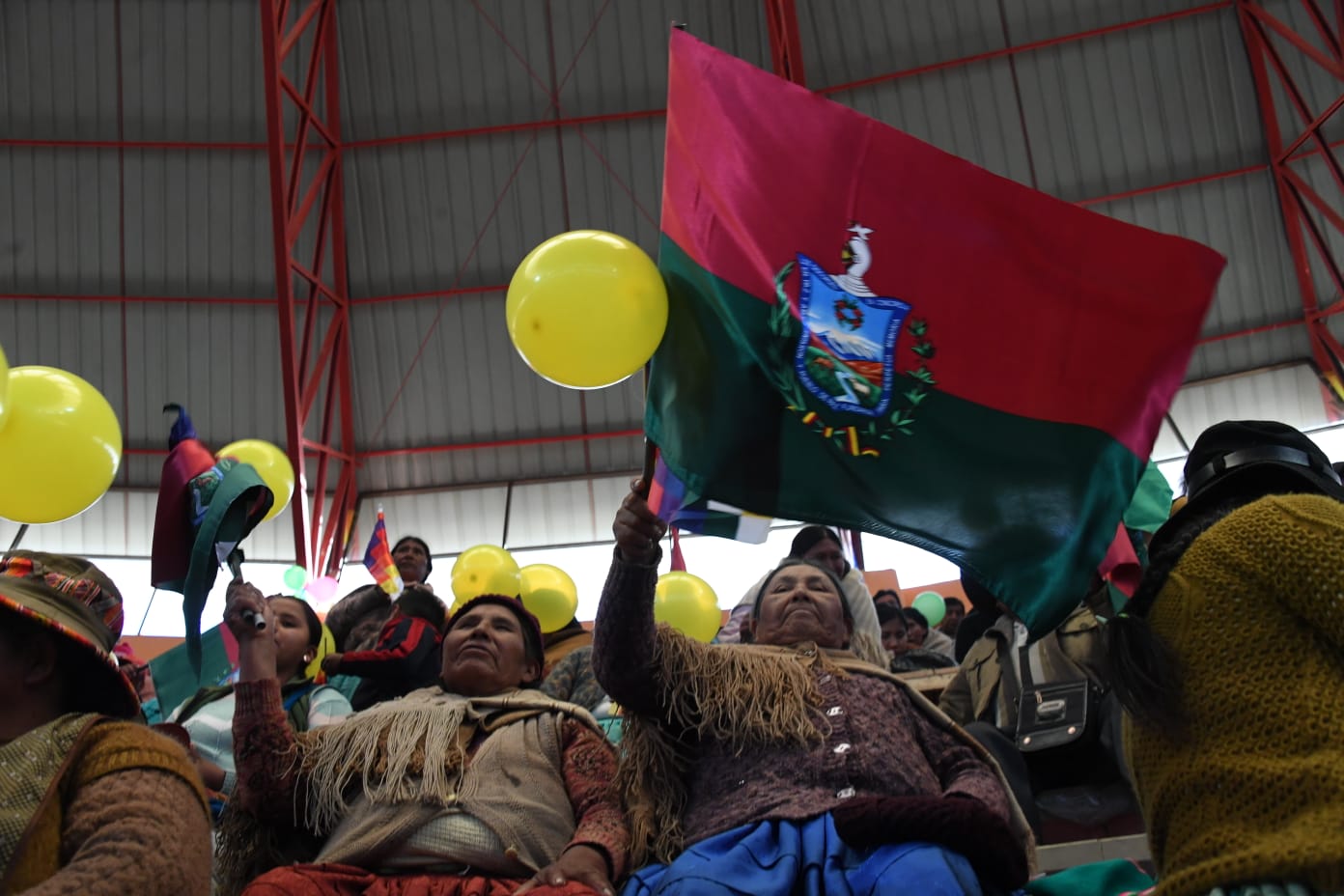 El Presidente del estado Luis Arce Catacora entrega 13.254 Títulos agrarios INRA en el mes aniversario del departamento de La Paz, coliseo cerrado Junthuma, Distrito 08, Ciudad de El alto. Fotos: Josué Cortéz
