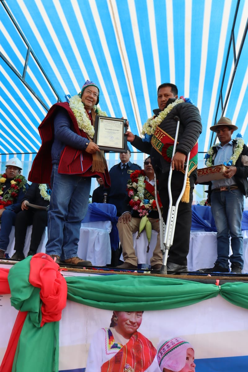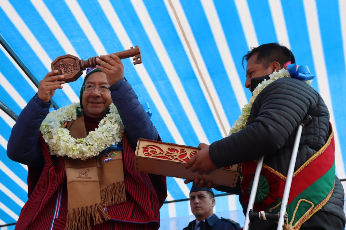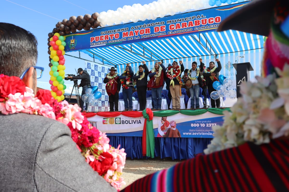 Presidente del Estado Luis Arce entrega 30 viviendas en el municipio del Puerto Mayor de Carabuco, en La Paz. Fuente: Comunicación Presidencial