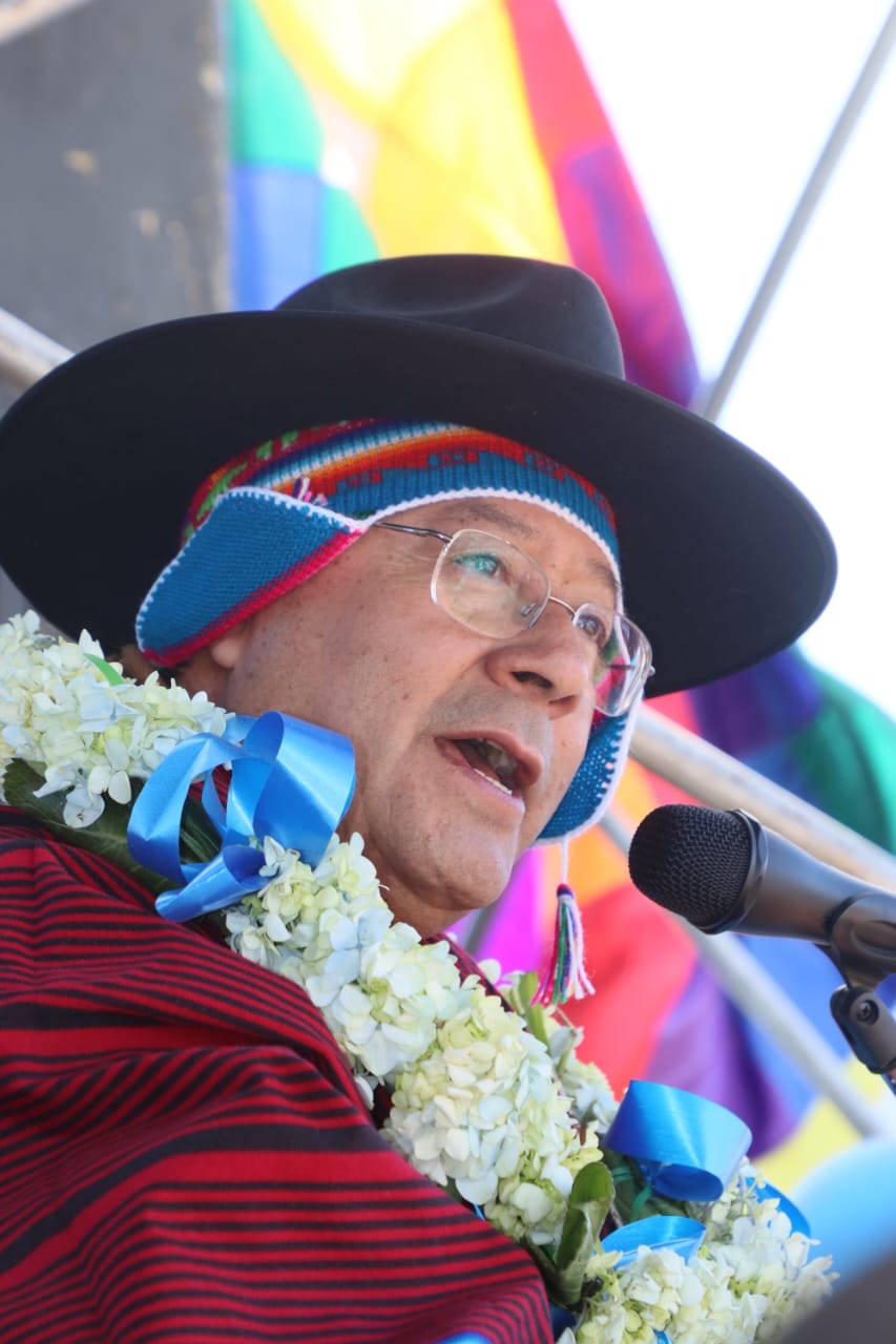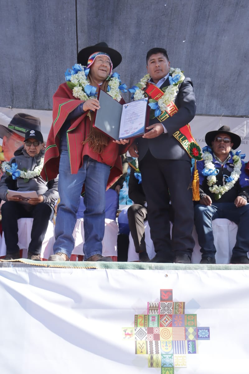 Presidente del Estado Luis Arce, entrega en Batallas el proyecto de Mejoramiento y Ampliación del Sistema de Agua Potable en favor de 19 comunidades de Alto Peñas. Fuente: Comunicación Presidencial