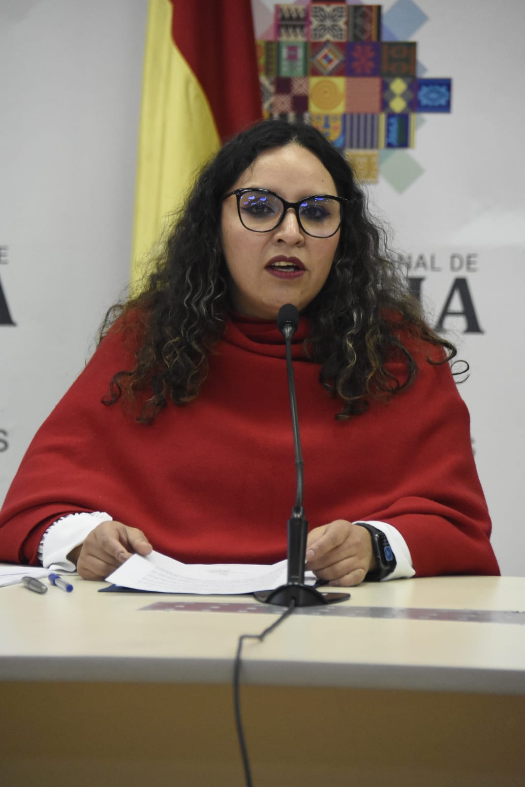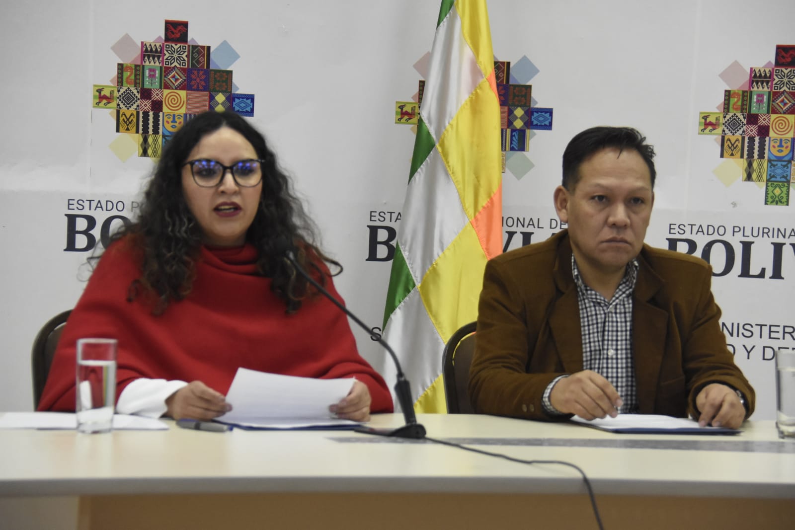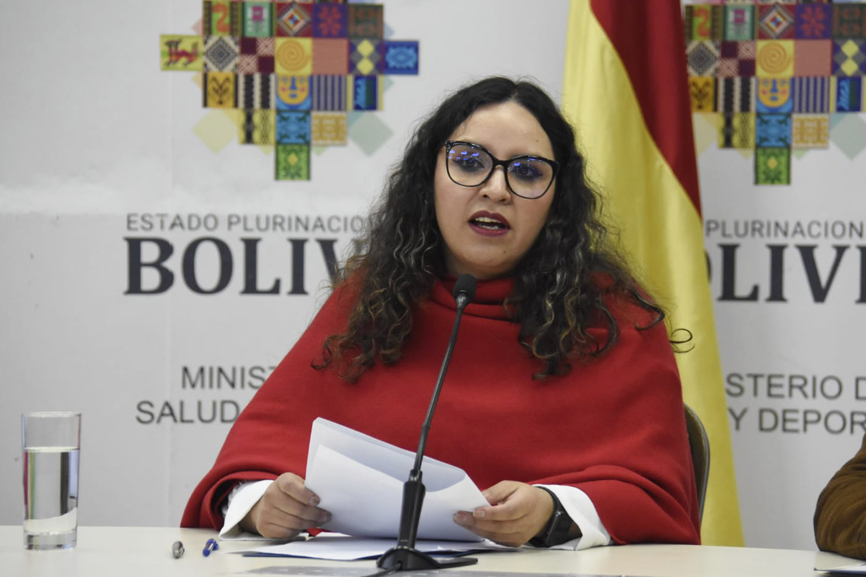 Ministra de Salud y Deportes, María Renée Castro brinda conferencia de prensa en referencia a denuncia de corrupción en la CNS de la ciudad de Santa Cruz