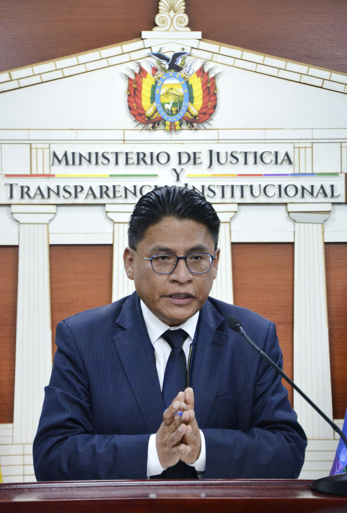Ministro de Justicia y Transparencia Institucional Ivan Lima, en conferencia de prensa habla sobre el caso del colegio Alemán de Santa Cruz