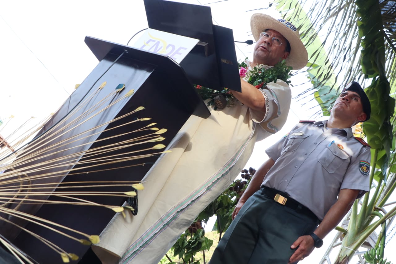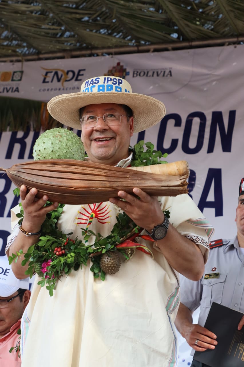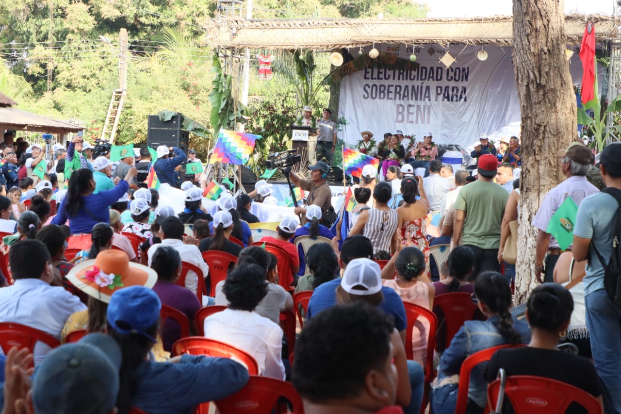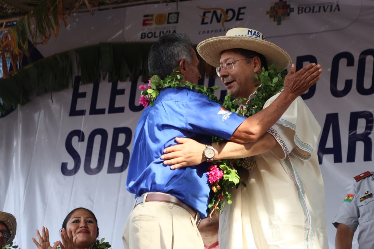 Presidente del Estado Luis Arce, entrega Proyecto de Electrificación Rural en el municipio de Huacaraje, Beni. Fuente: Comunicación Presidencial