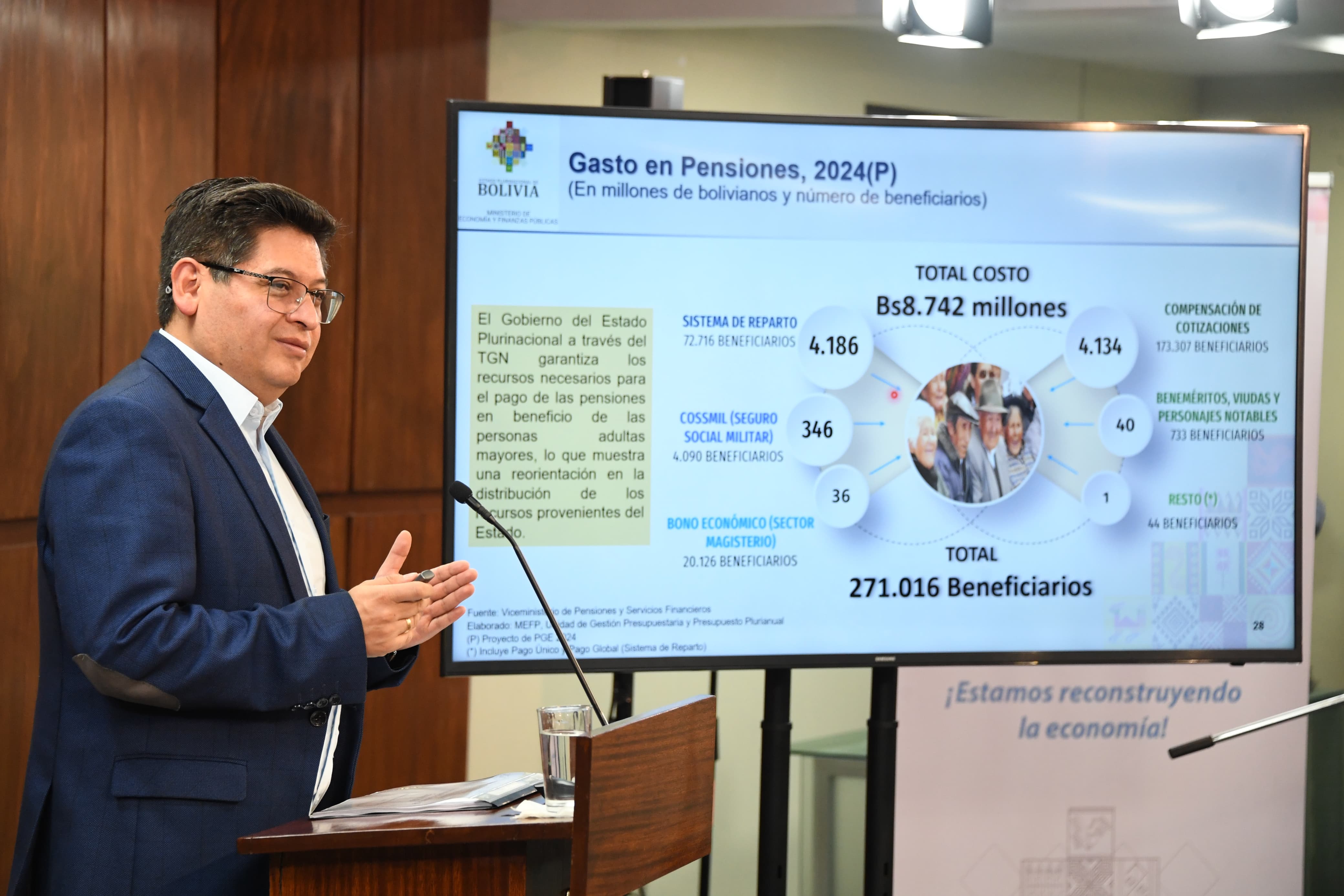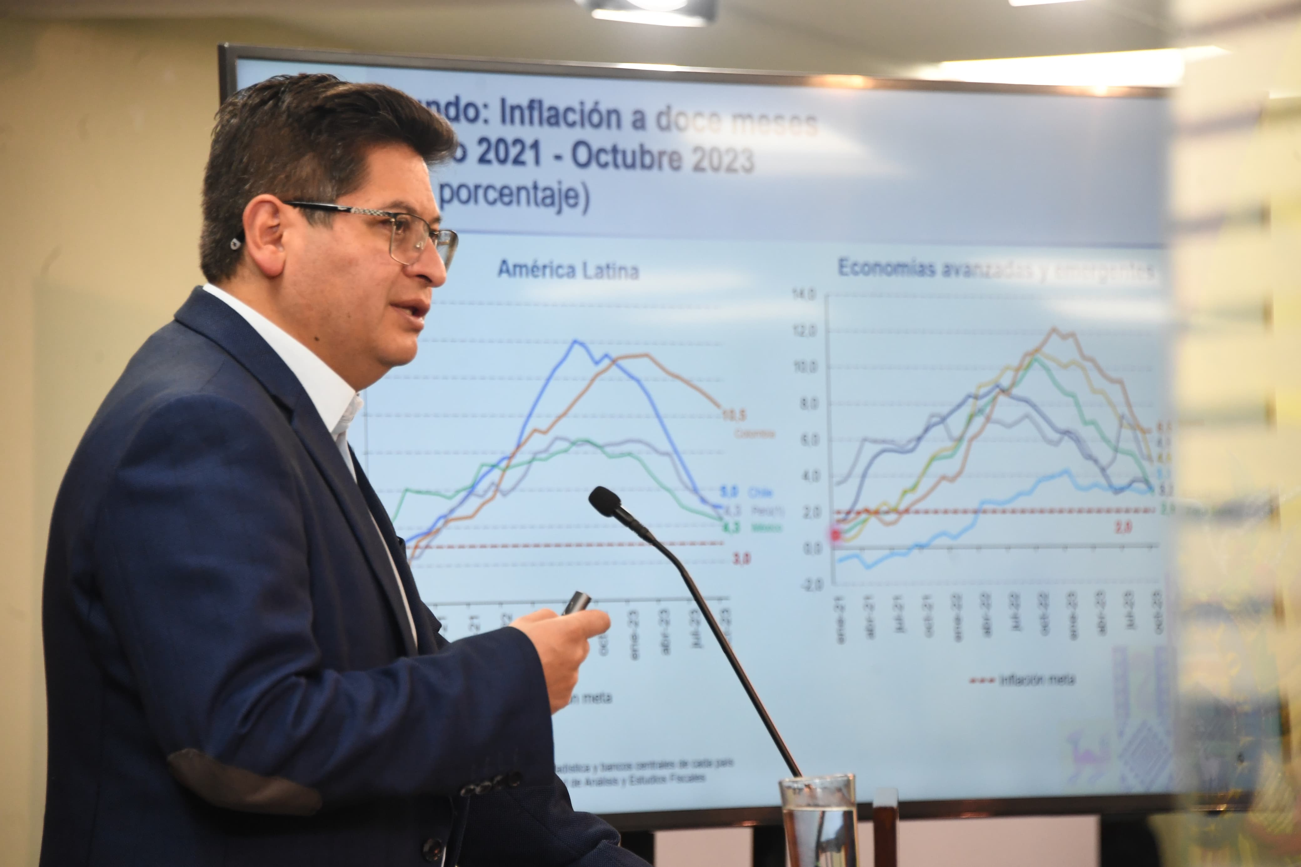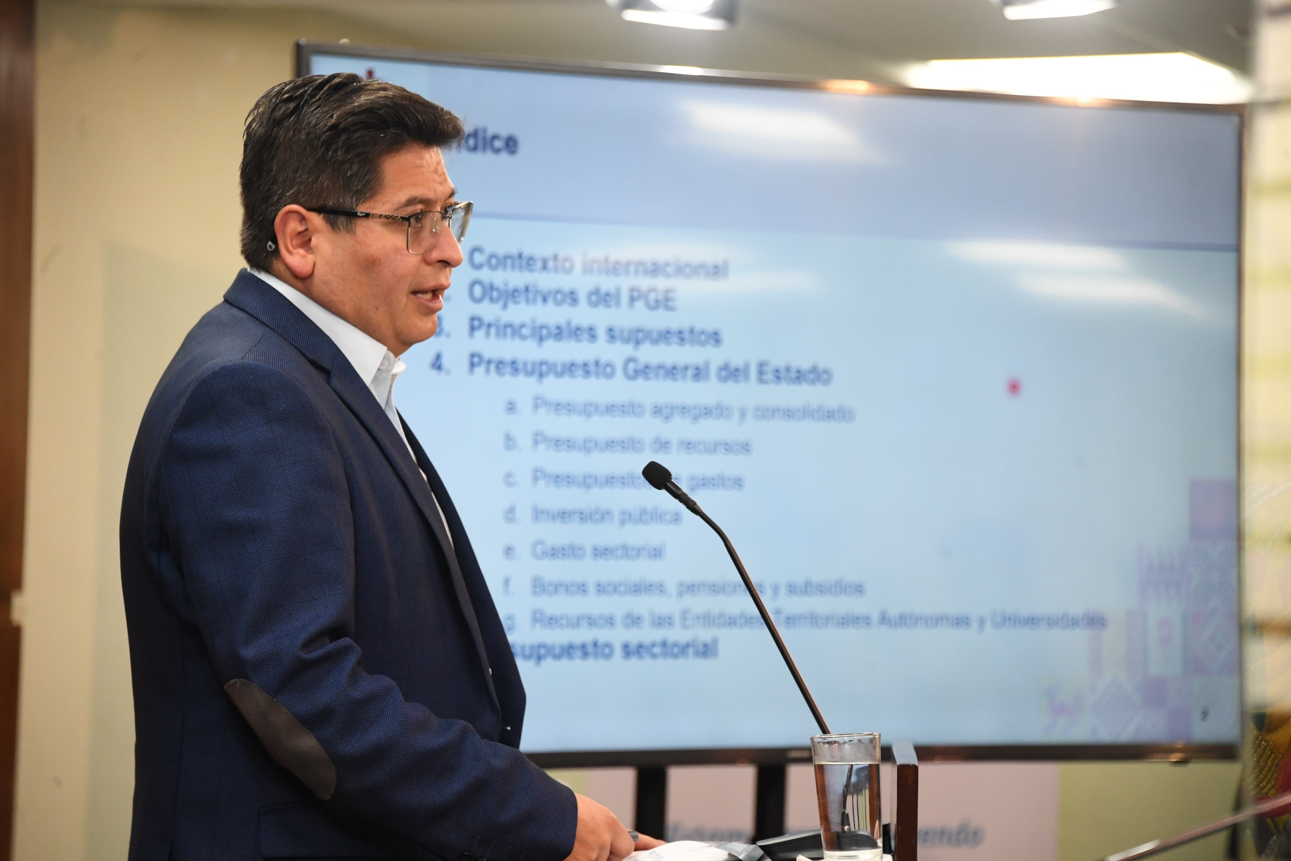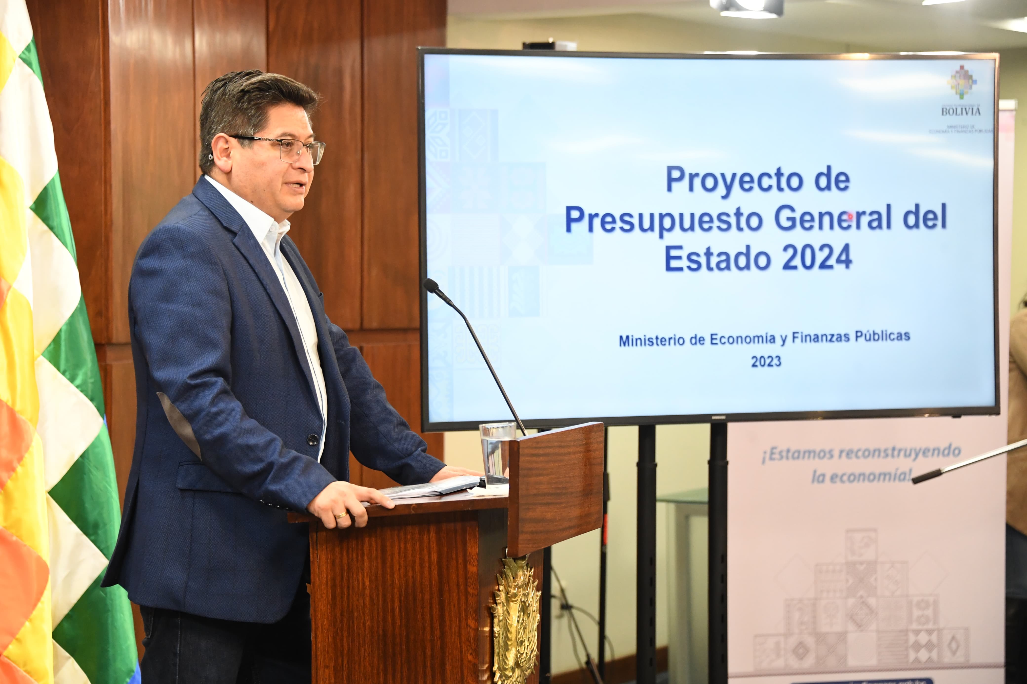 El ministro de Economía y Finanzas Públicas Marcelo Montenegro informó sobre el Proyecto de Ley del Presupuesto General del Estado 2024Usuario ABIGalería Fotográfica 01 Diciembre 2023 Visto: 6067ShareTwittearshare with Whatsappshare with Telegram Fotografia: ABI - Agencia Boliviana de InformaciónAnteriorSiguiente