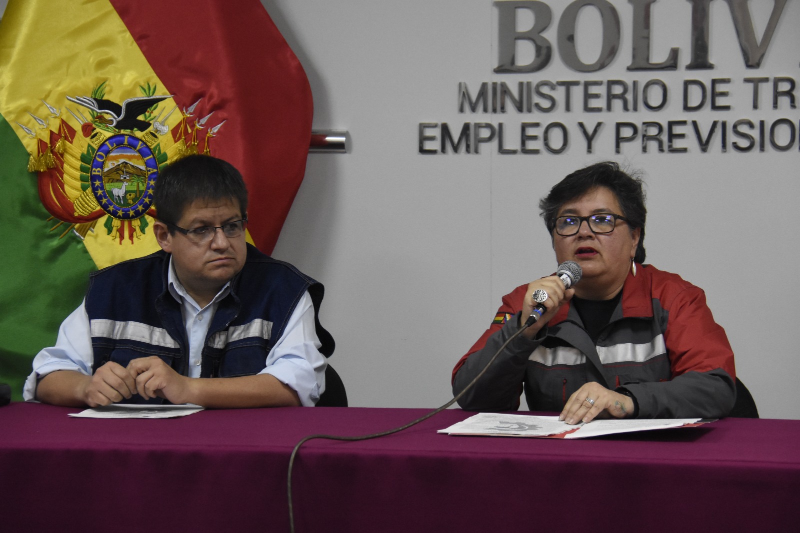 La ministra de Trabajo, Verónica Navia y el director general de Trabajo Yacid Mollinedo, instruye el pago de aguinaldo hasta el 20 de diciembreUsuario ABIGalería Fotográfica 04 Diciembre 2023 Visto: 5144ShareTwittearshare with Whatsappshare with Telegram Fotografia: Gonzalo JallasiAnteriorSiguiente