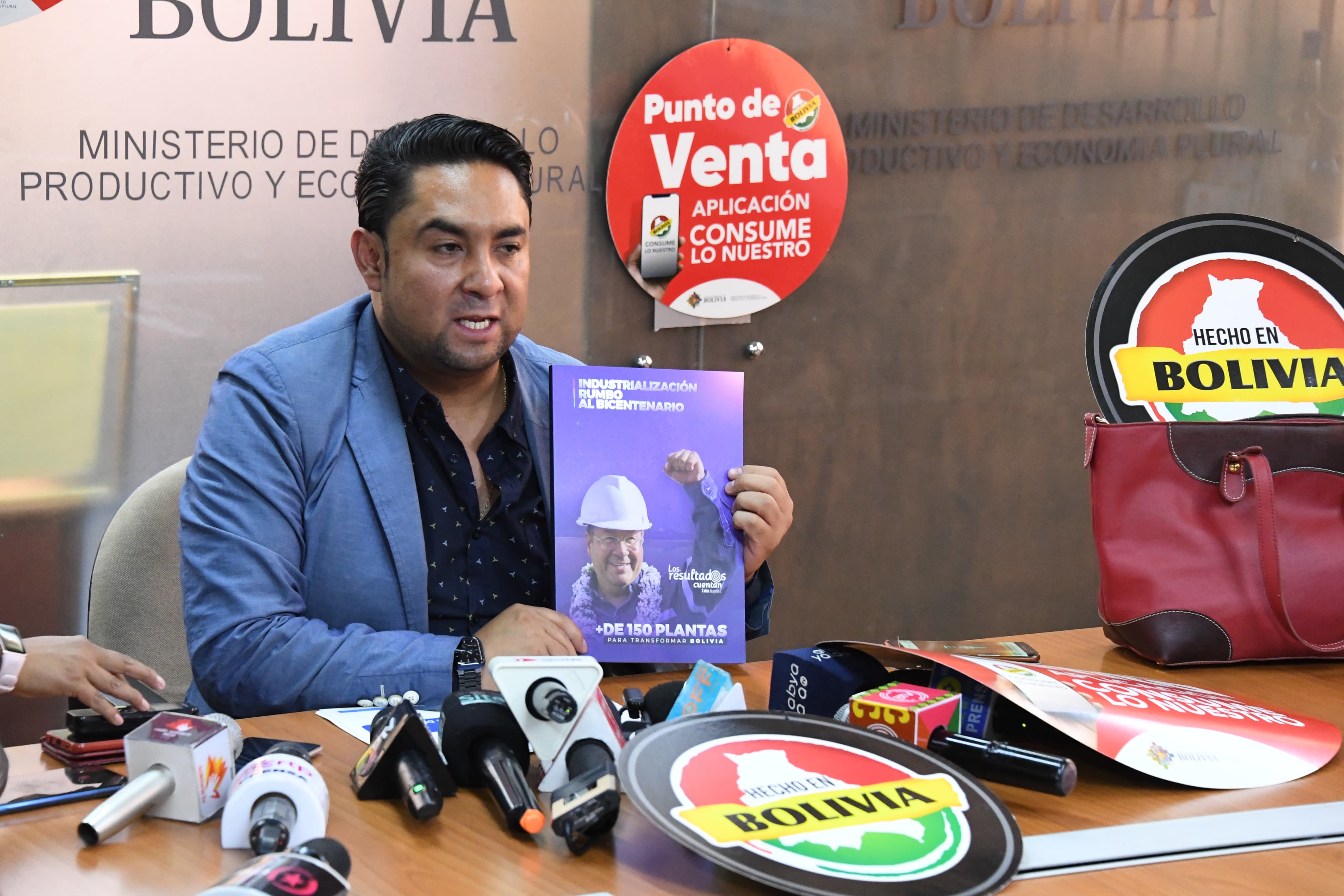El Ministerio de Desarrollo Productivo y Economía Plural brindo información sobre la aplicación móvil Consume lo Nuestro para impulsar la producción nacional con el sello Hecho en Bolivia