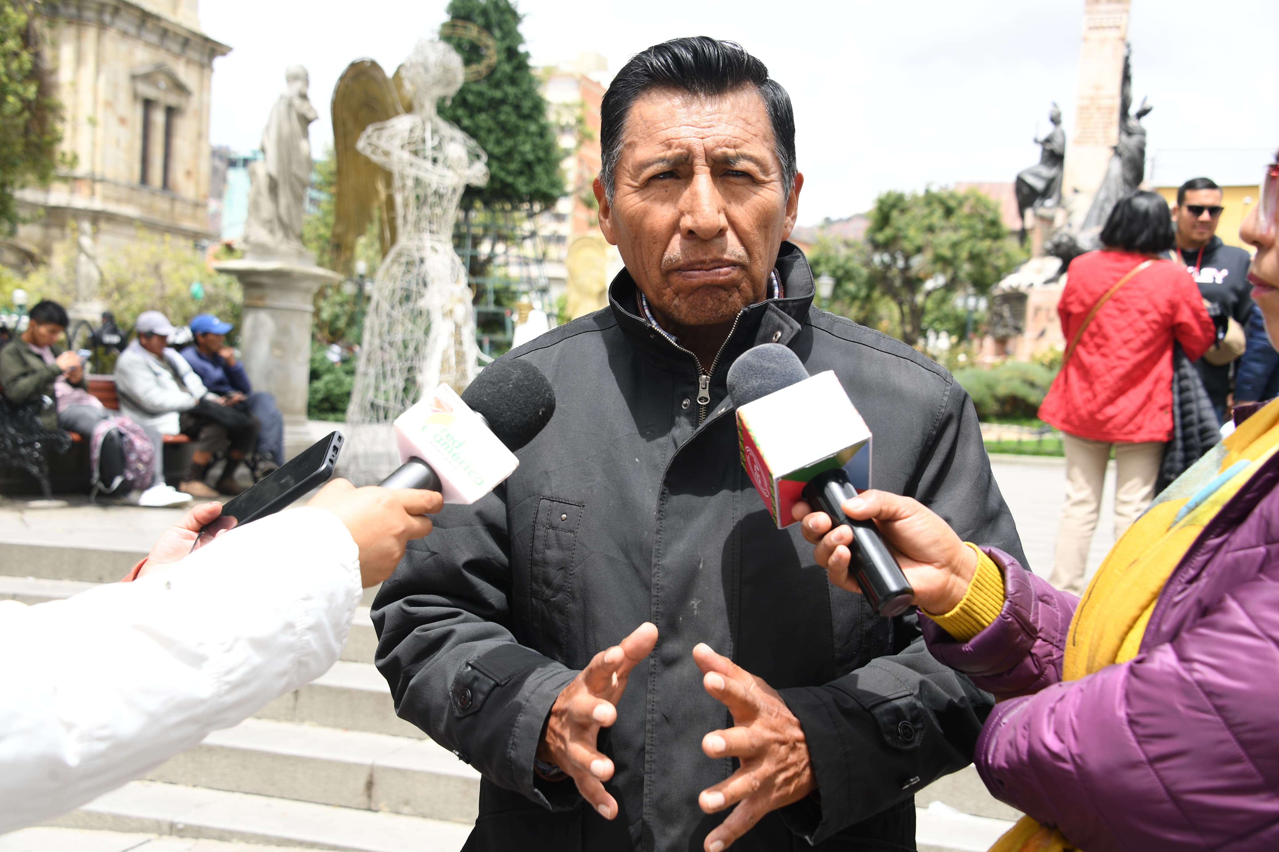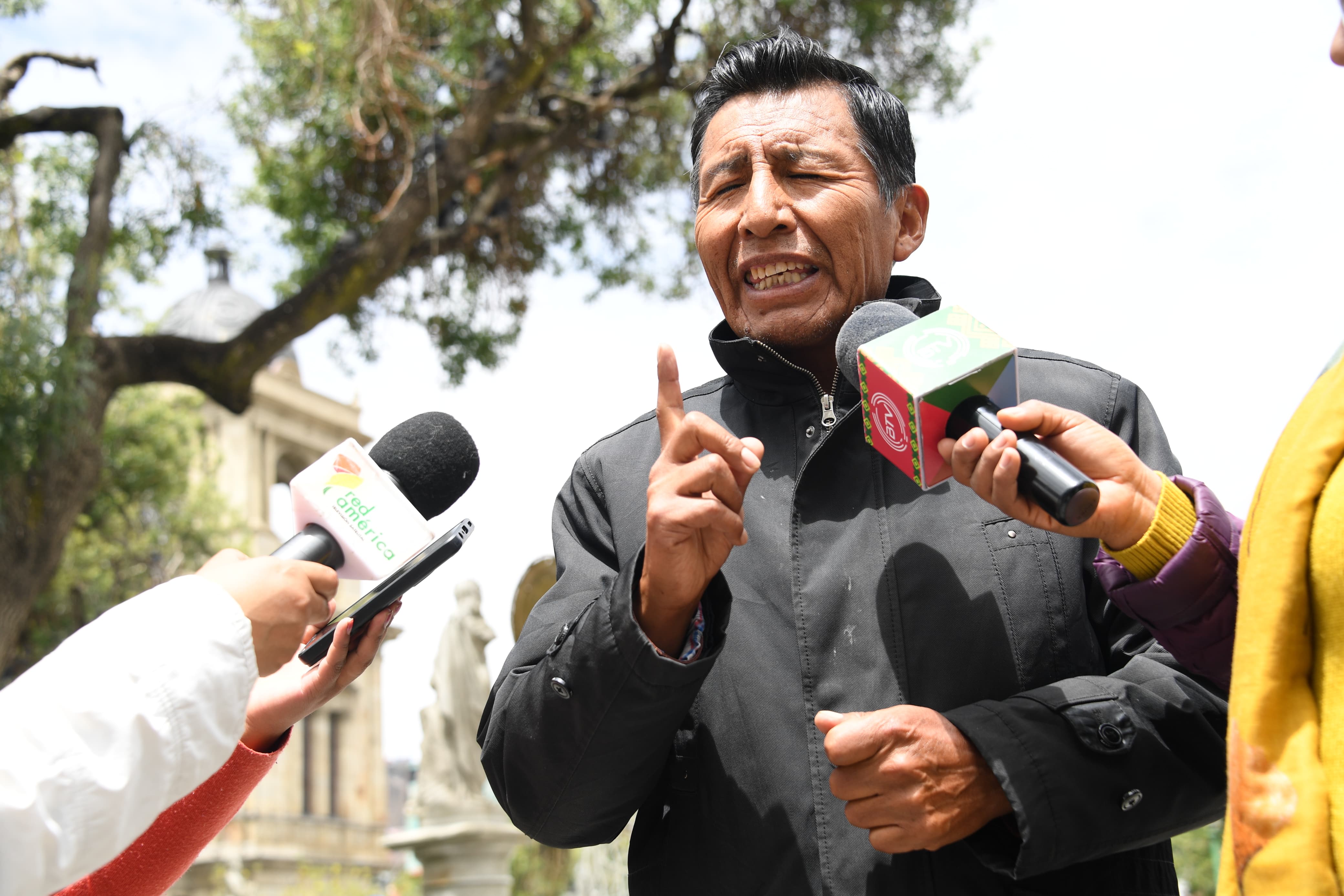El exejecutivo de la Confederación Sindical Única de Trabajadores Campesinos de Bolivia CSUTCB, Adalberto Ticona en diálogo con los medios de comunicación