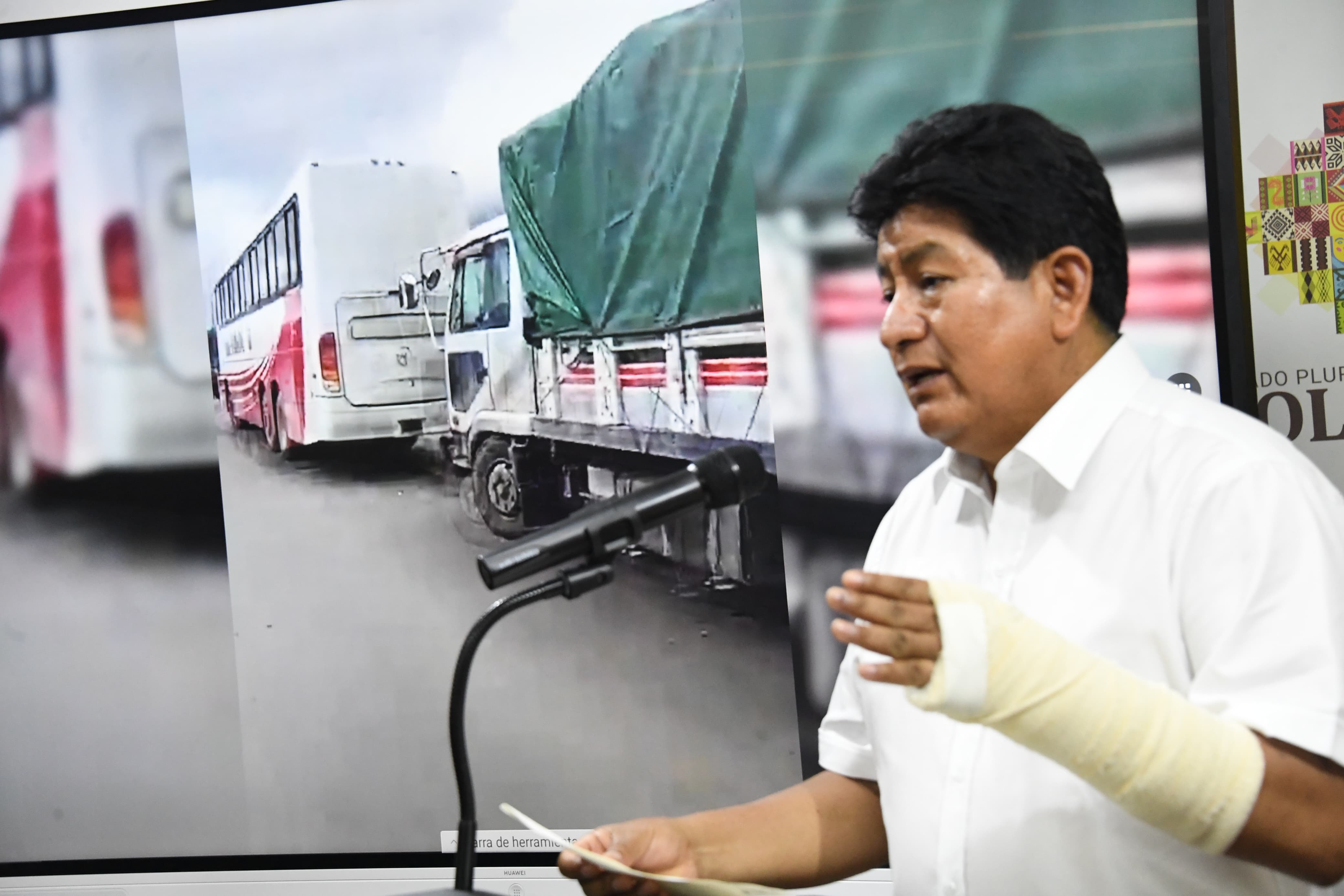 El ministro de Obras Públicas, Servicios y Vivienda, Edgar Montaño, brinda datos de las pérdidas económicas por bloqueos en la carretera Cochabamba - Santa Cruz, y rutas alternas