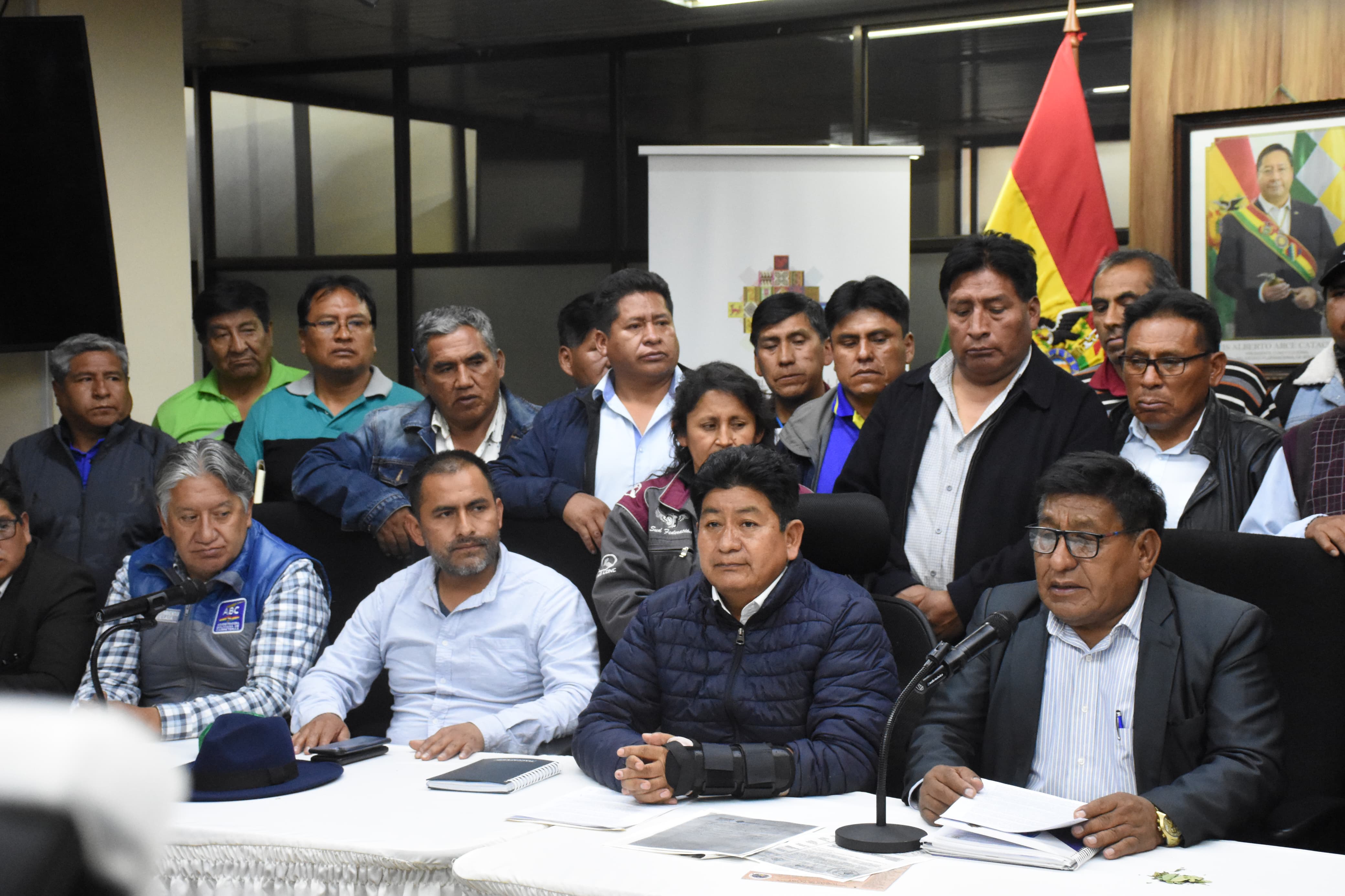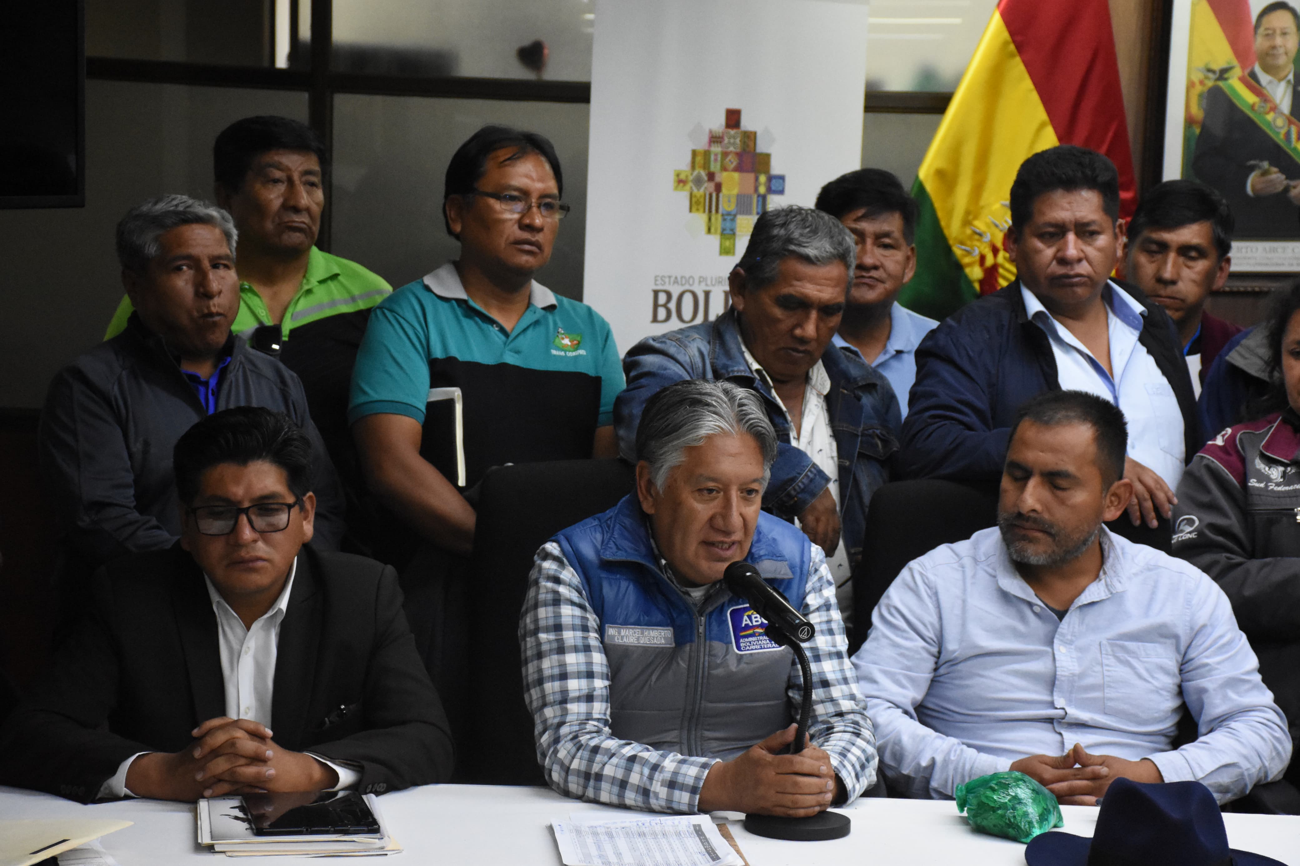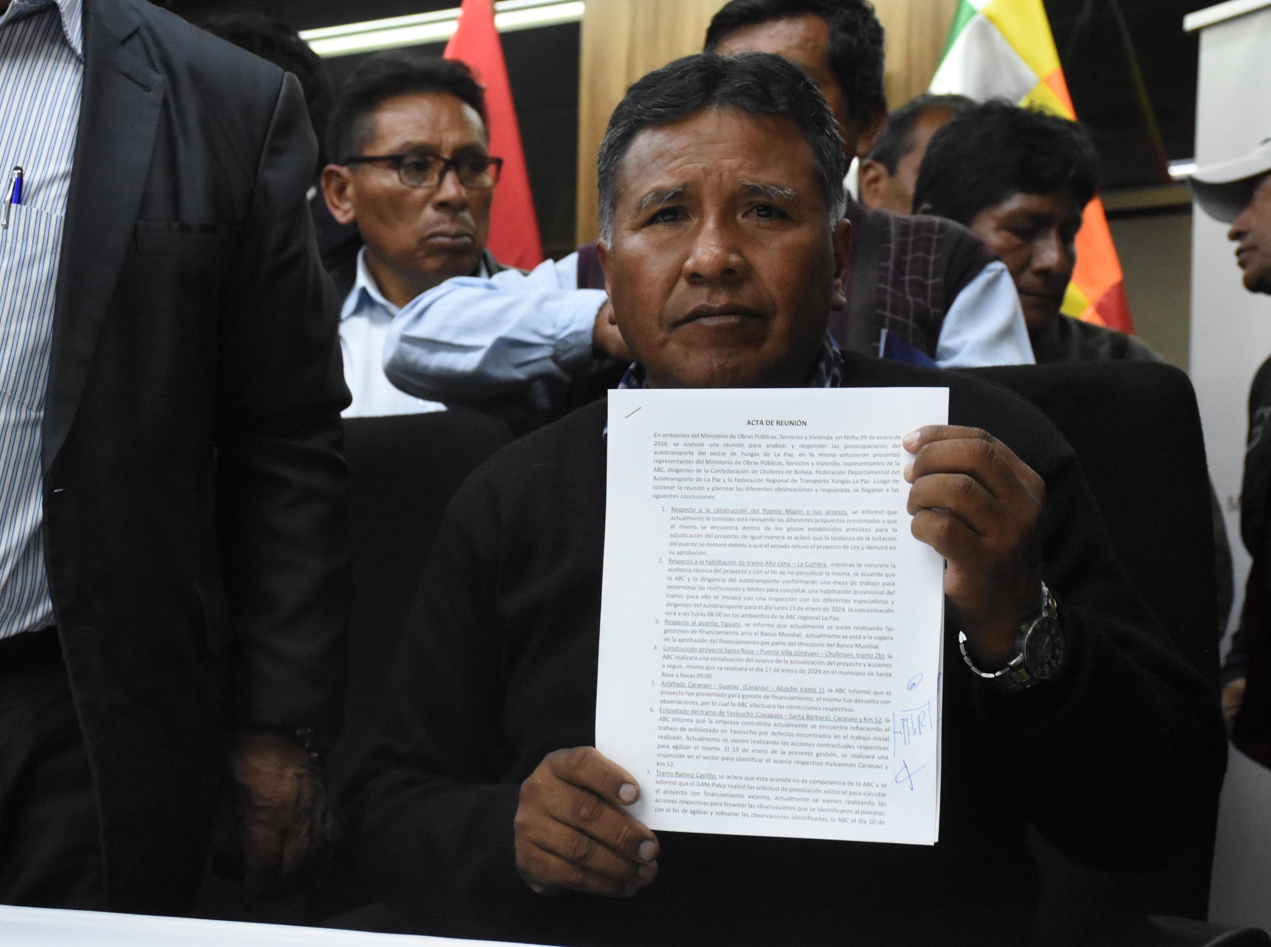 El ministro de Obras Públicas, Servicios y Vivienda, Edgar Montaño, y la Dirigencia de la Federación de Transporte de los Yungas, en conferencia tras la conclusión del diálogo Usuario ABIGalería Fotográfica 09 Enero 2024 Visto: 8139ShareTwittearshare with Whatsappshare with Telegram Fotos: Josue Cortez / ABIAnteriorSiguiente
