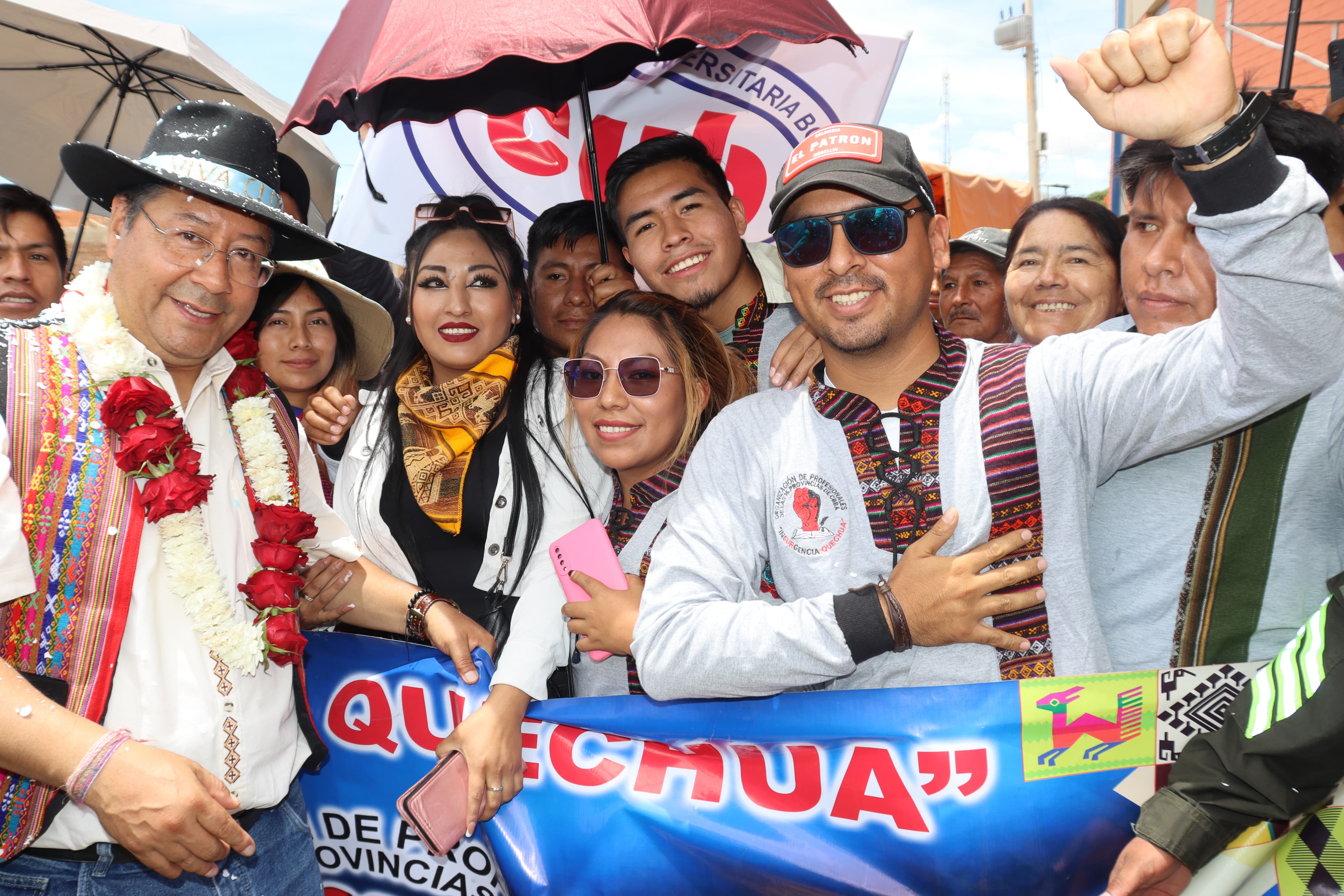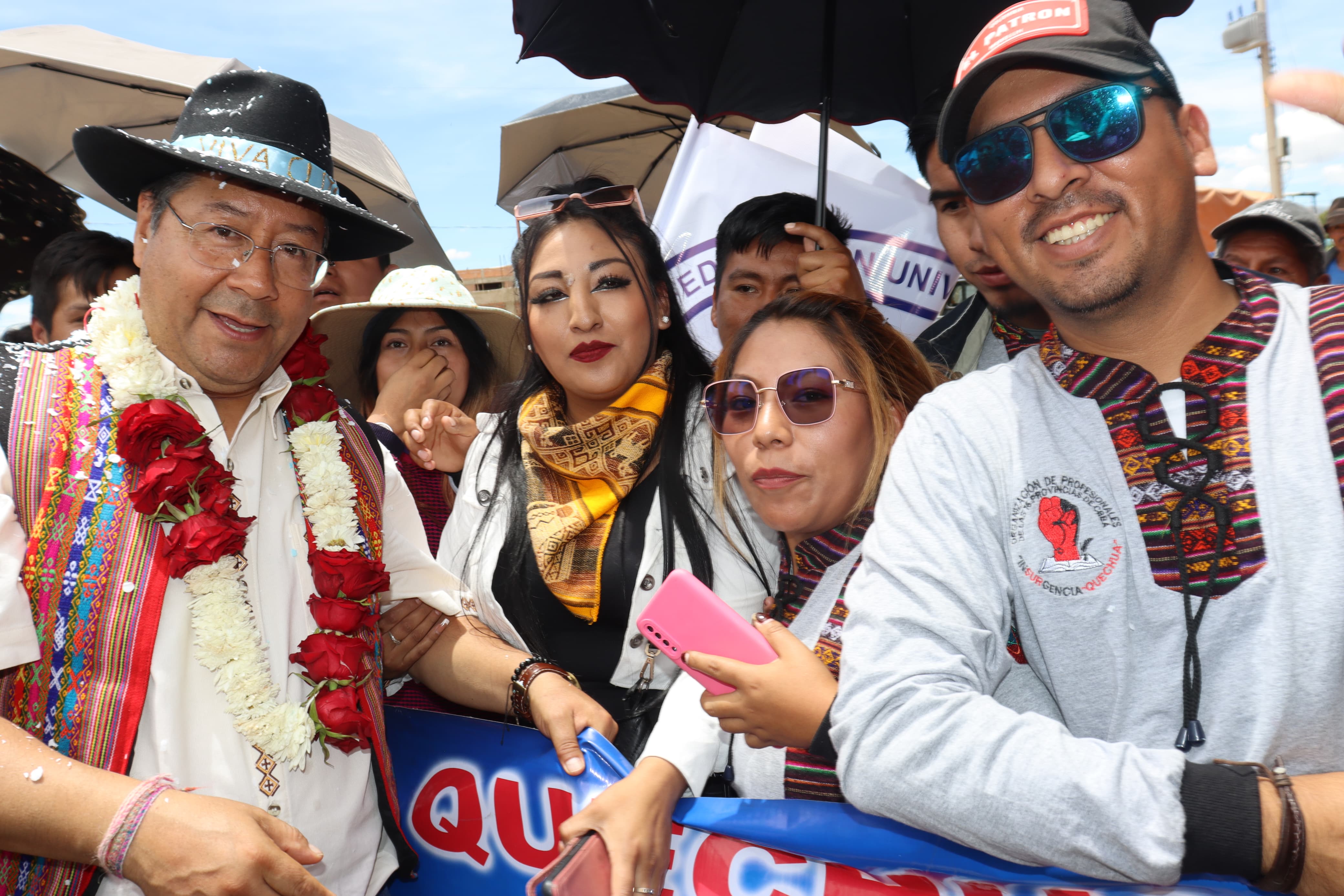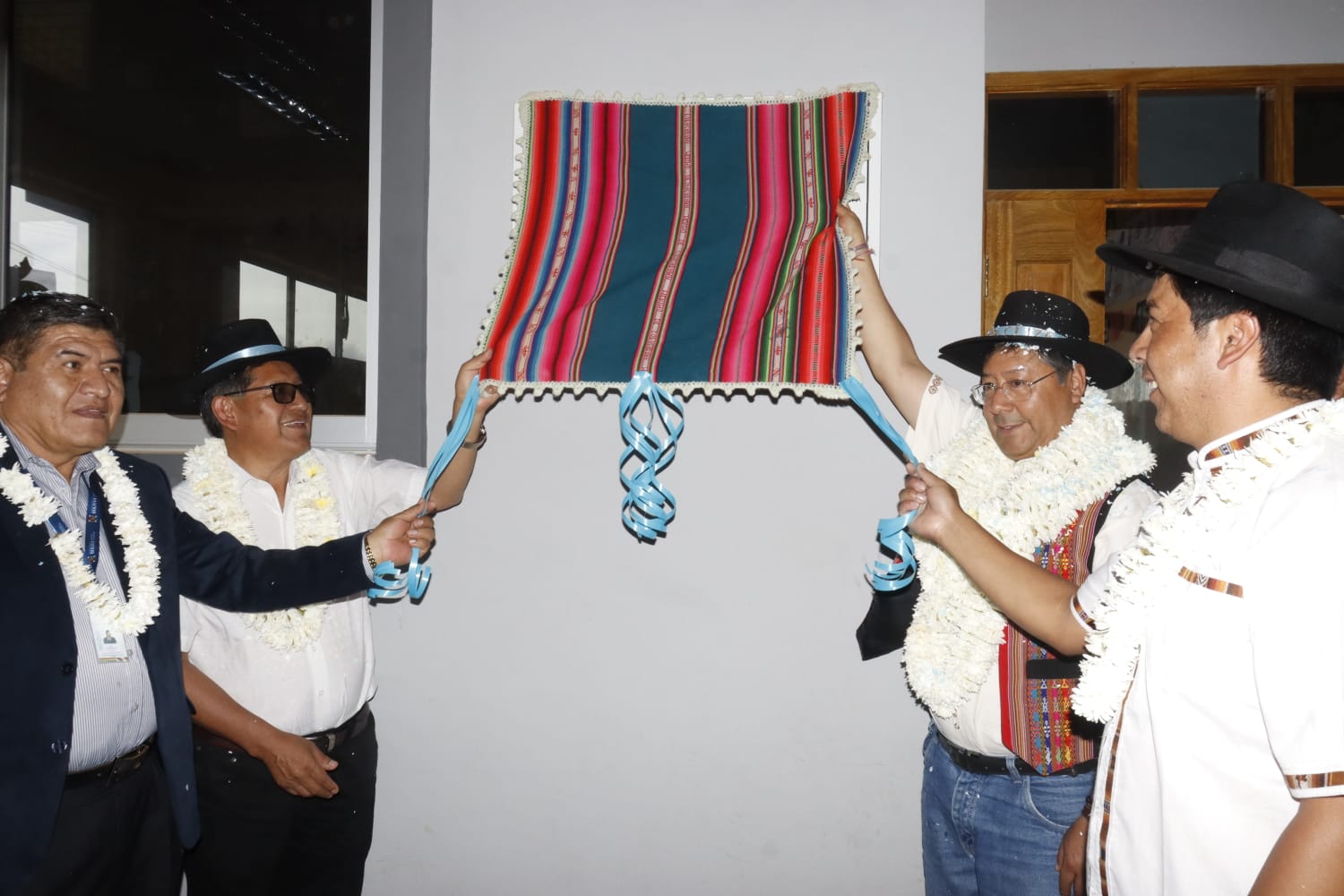 El presidente del Estado, Luis Arce, ch'alla la Unidad Educativa Villa El Carmen y el Proyecto de Ampliación del Canal de Riego Sector Poza Rancho, en el municipio de Cliza, Cochabamba