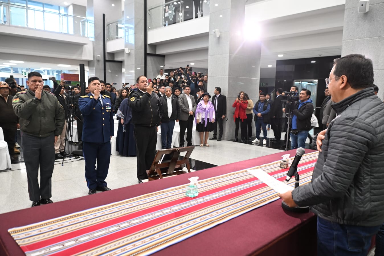 El presidente Luis Arce posesionó al nuevo Alto Mando de las Fuerzas Armadas en medio de una intentona golpista comandada por el general Juan José ZúñigaUsuario ABIGalería Fotográfica 28 Junio 2024 Visto: 2112ShareTwittearshare with Whatsappshare with TelegramFotos: Josué Cortez y Comunicación Presidencial AnteriorSiguiente