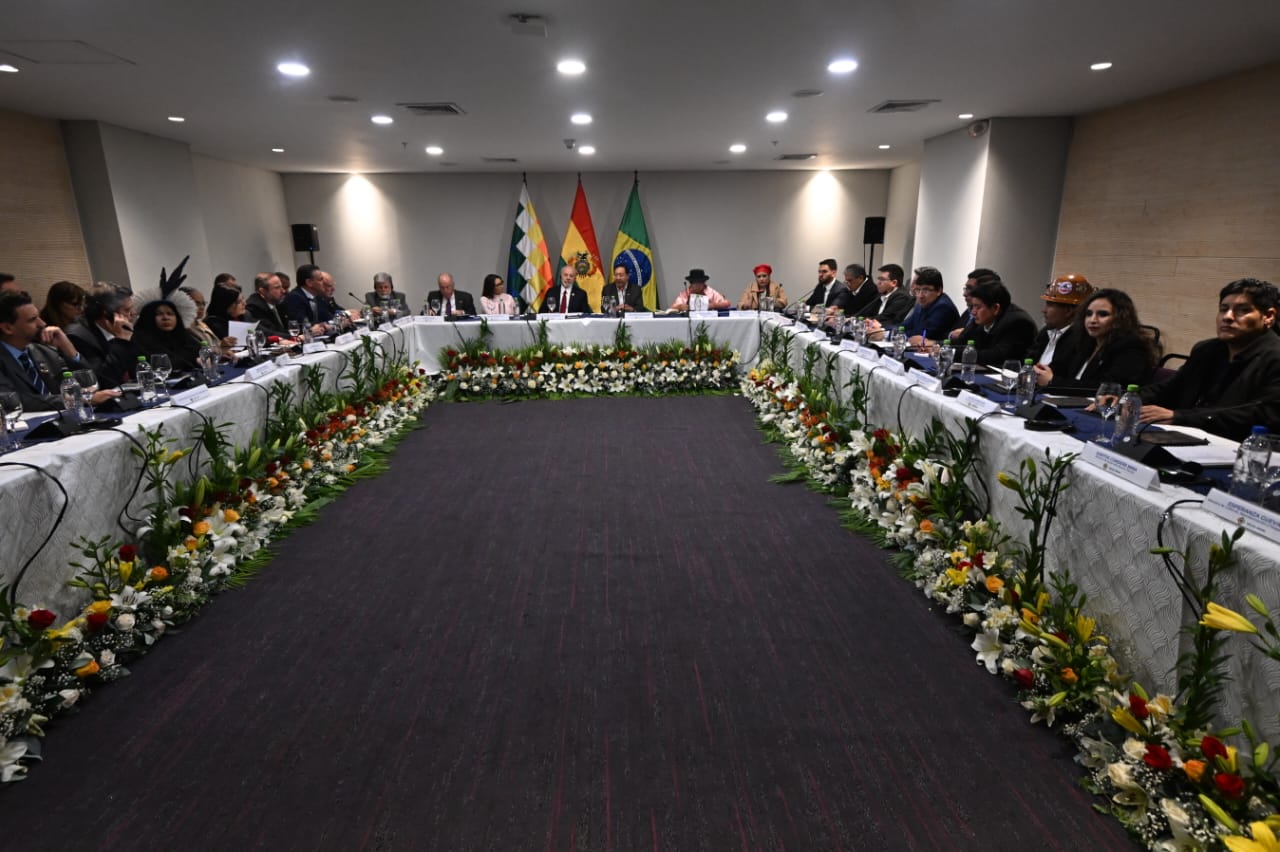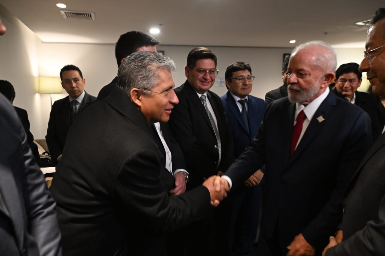 El presidente del Estado, Luis Arce Catacora, y su homólogo de Brasil participan en reunión bilateral en Santa Cruz, además en un encuentro ampliado con sus ministrosUsuario ABIGalería Fotográfica 09 Julio 2024 Visto: 2245ShareTwittearshare with Whatsappshare with TelegramFuente Comunicación Presidencial AnteriorSiguiente