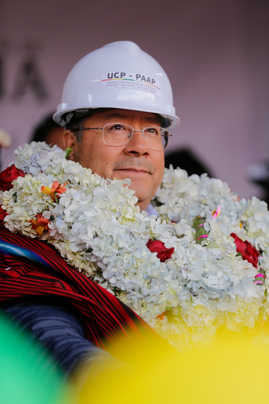 El presidente del Estado, Luis Arce Catacora, inicia la construcción de la ampliación del Sistema de Alcantarillado Sanitario, Sector Norte Distritos 5, 13 y 4 de la ciudad de El Alto