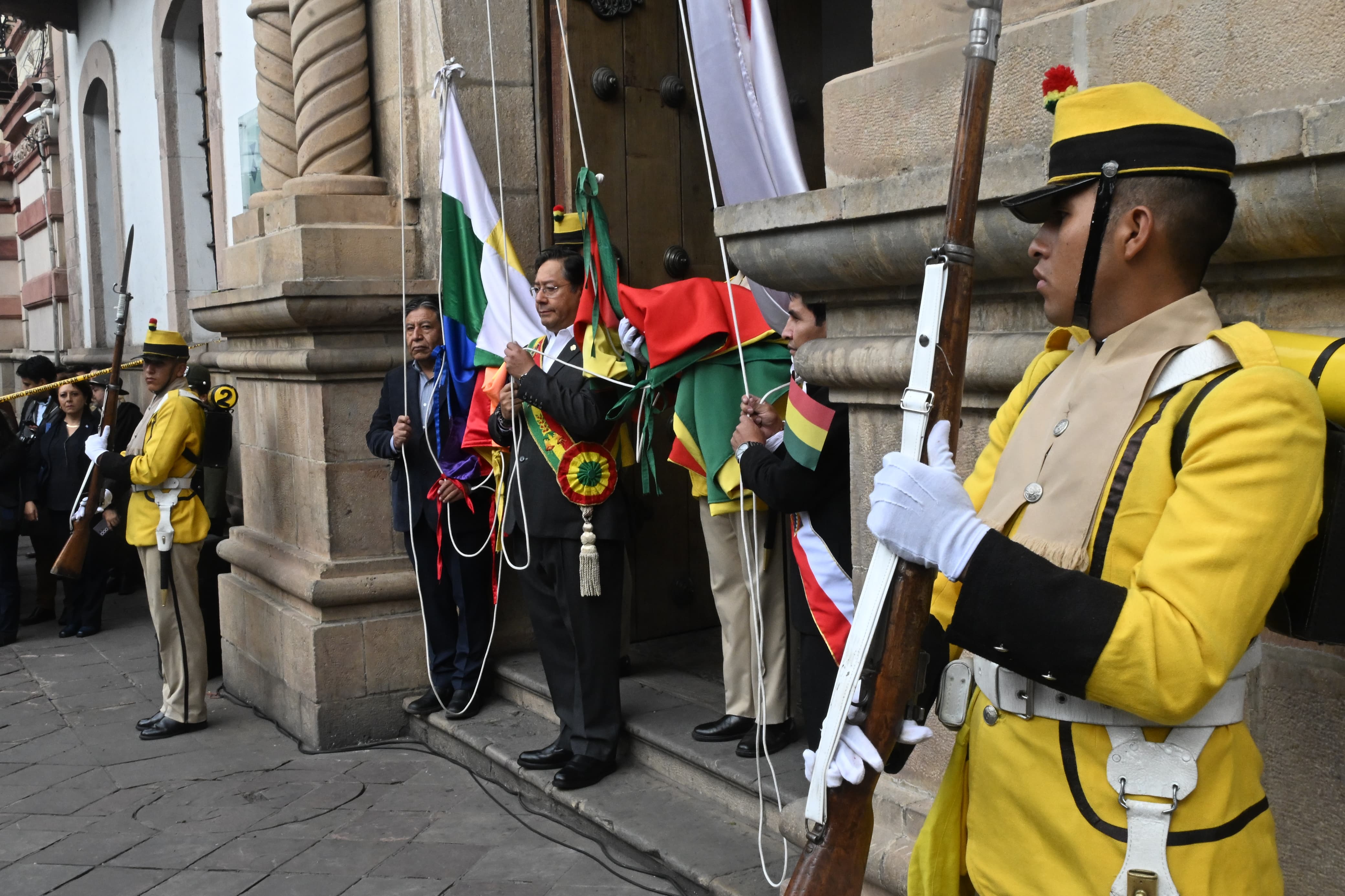 El presidente del Estado Plurinacional de Bolivia, Luis Arce Catacora, realiza la iza de banderas en la ceremonia de apertura del año del Bicentenario, en SucreUsuario ABIGalería Fotográfica 06 Enero 2025 Visto: 1005ShareTwittearshare with Whatsappshare with TelegramFuente: Comunicación Presidencial AnteriorSiguiente