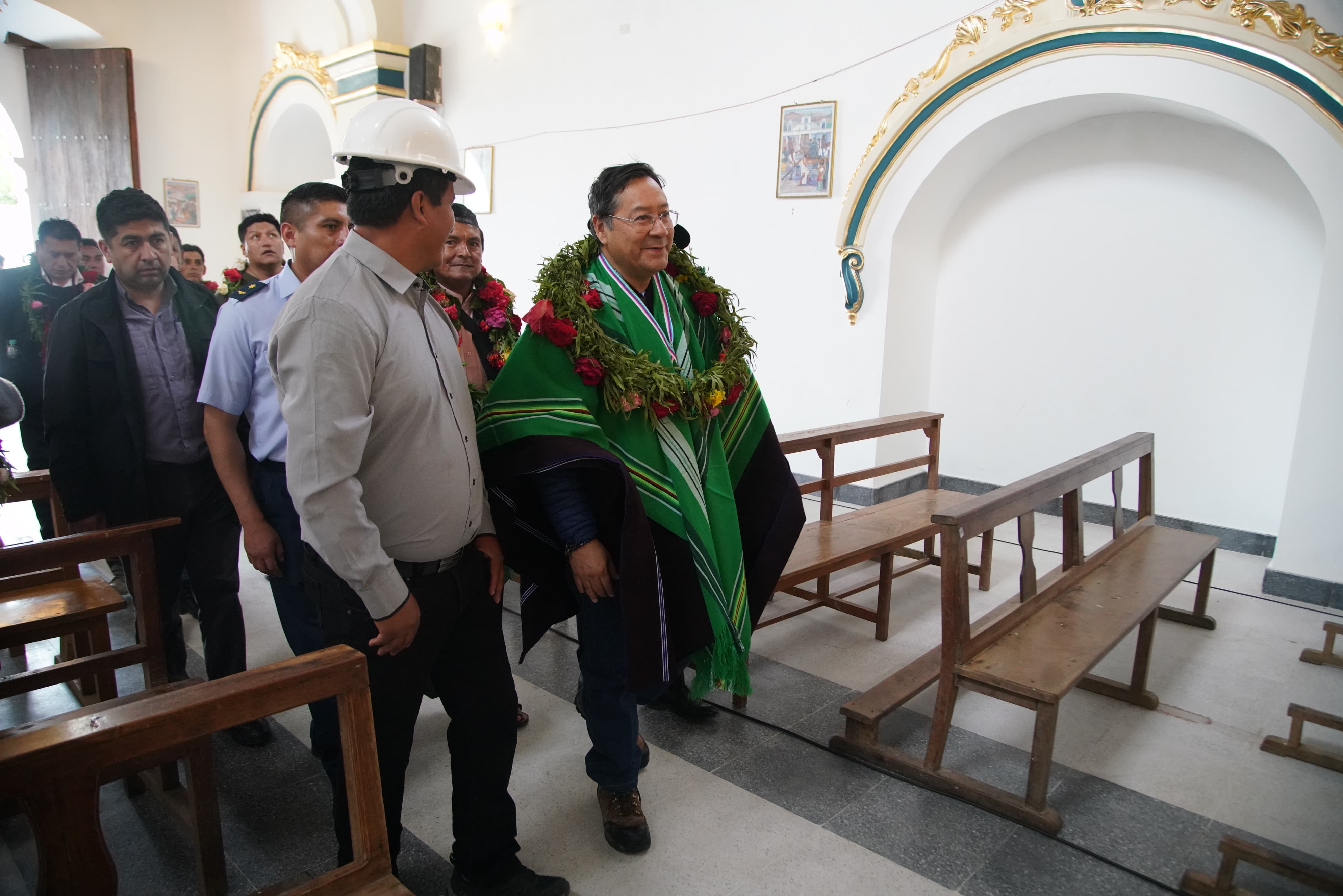 El presidente del Estado Plurinacional de Bolivia, Luis Arce Catacora, entrega el Proyecto de Restauración y Refacción del Templo Santiago de Frontera en el municipio de Tomina, Chuquisaca