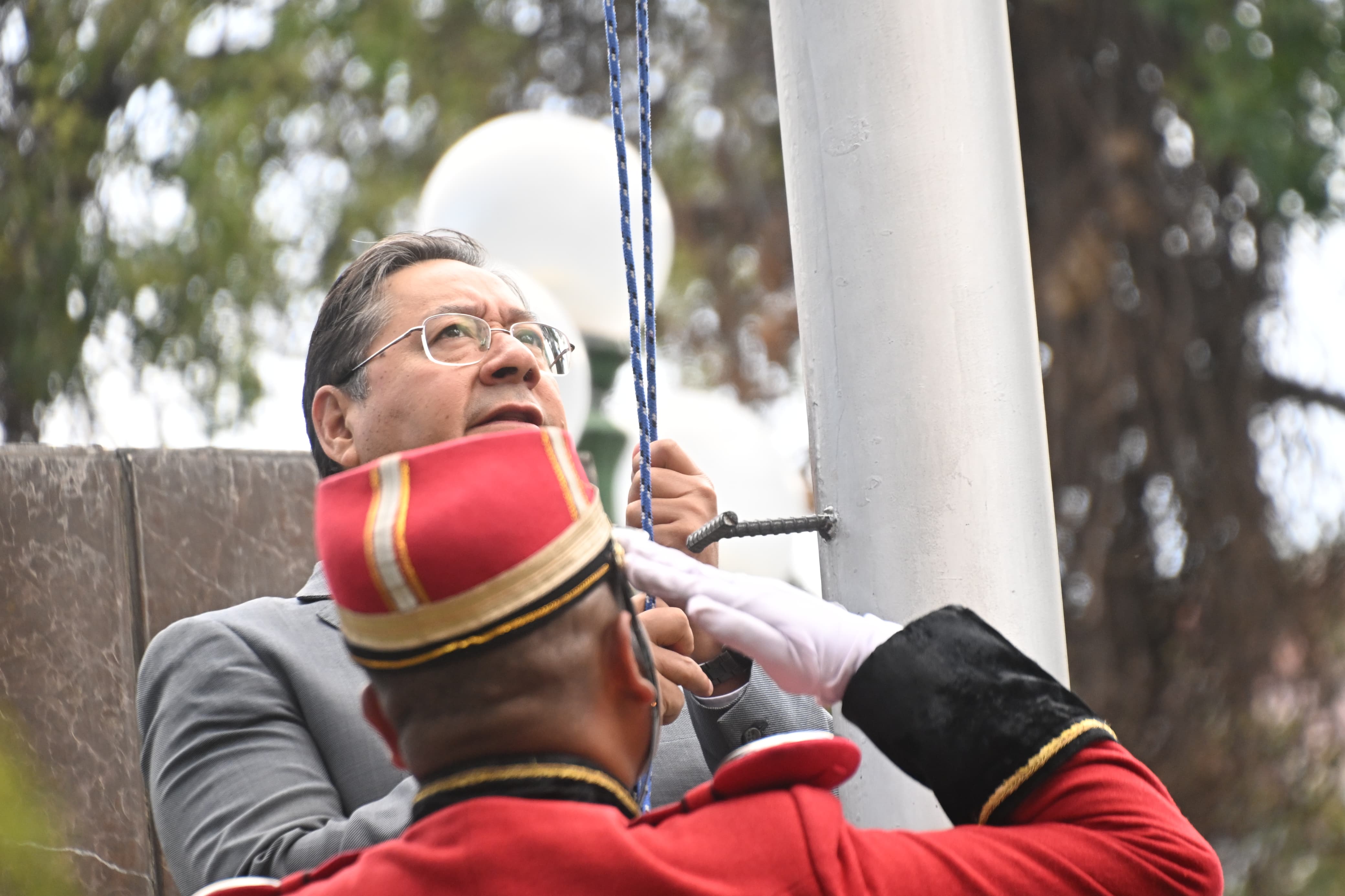 El Presidente del Estado Plurinacional de Bolivia, Luis Arce Catacora, realiza la iza de banderas en Plaza Murillo, como parte de los actos por el Bicentenario de BoliviaUsuario ABIGalería Fotográfica 03 Febrero 2025 Visto: 376ShareTwittearshare with Whatsappshare with TelegramFuente Comunicación Presidencial AnteriorSiguiente