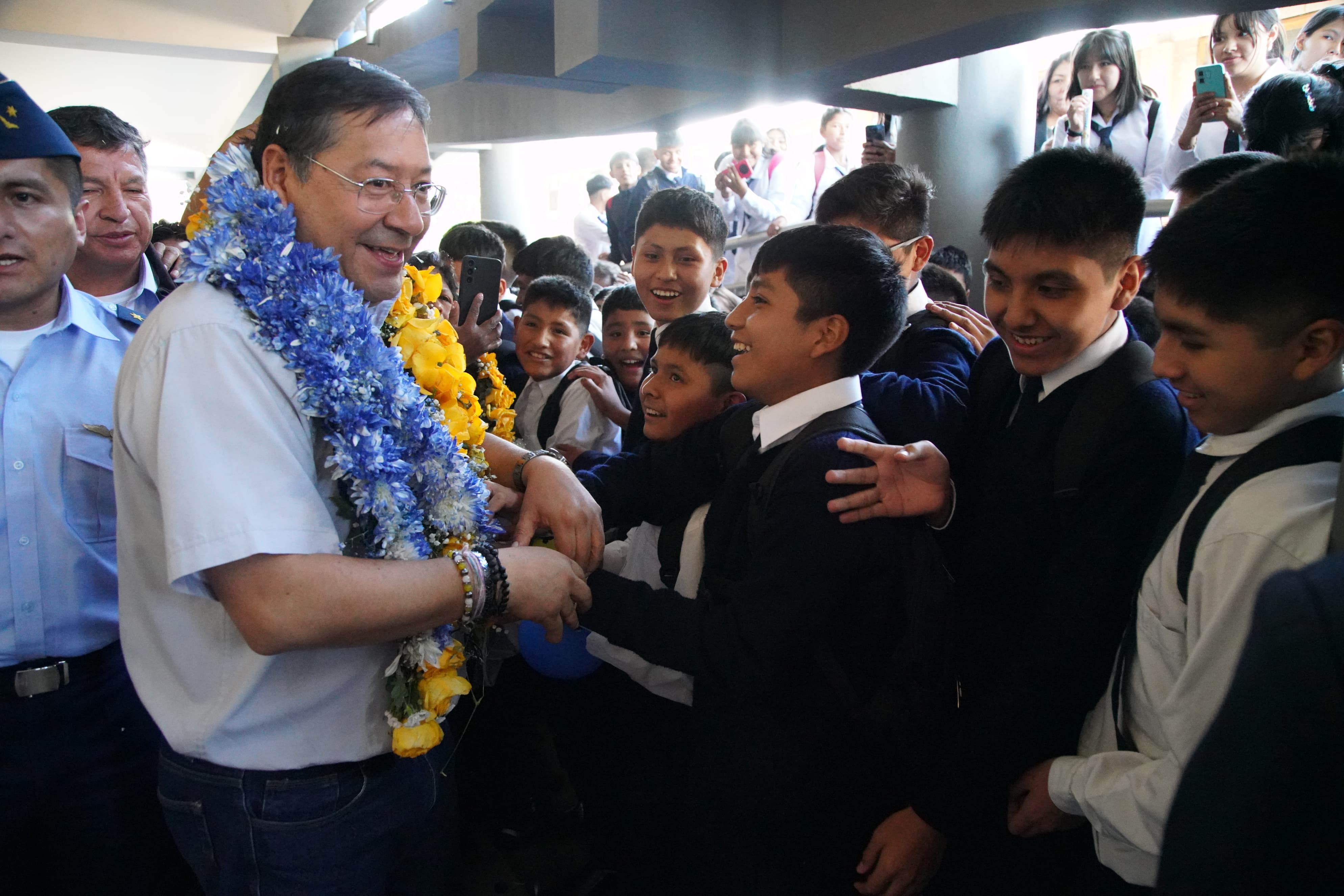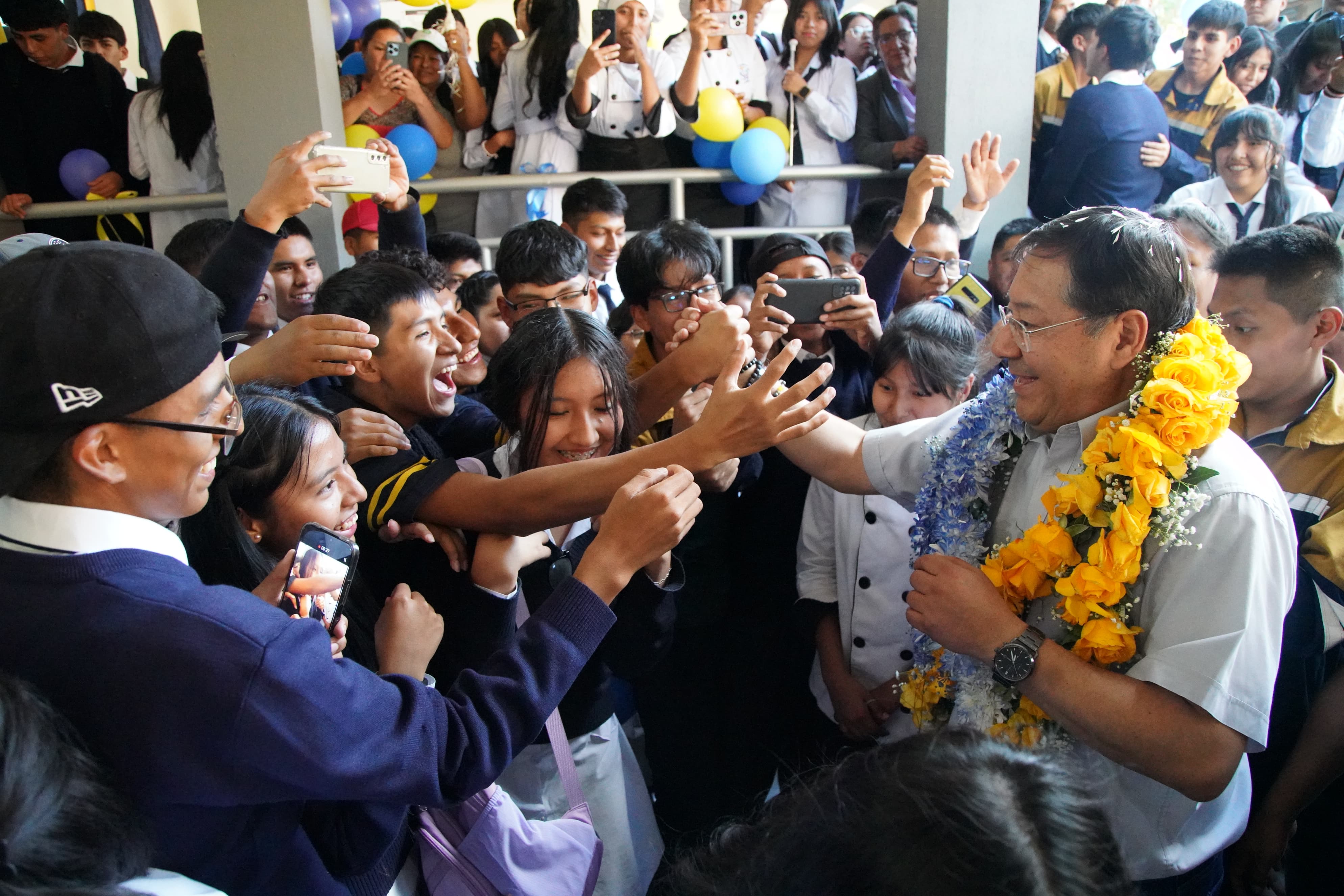 El Presidente del Estado Plurinacional de Bolivia, Luis Arce Catacora, ch'alla y entrega la Unidad Educativa "Buenas Nuevas" en el municipio de CochabambaUsuario ABIGalería Fotográfica 03 Febrero 2025 Visto: 487ShareTwittearshare with Whatsappshare with TelegramFuente Comunicación Presidencial AnteriorSiguiente