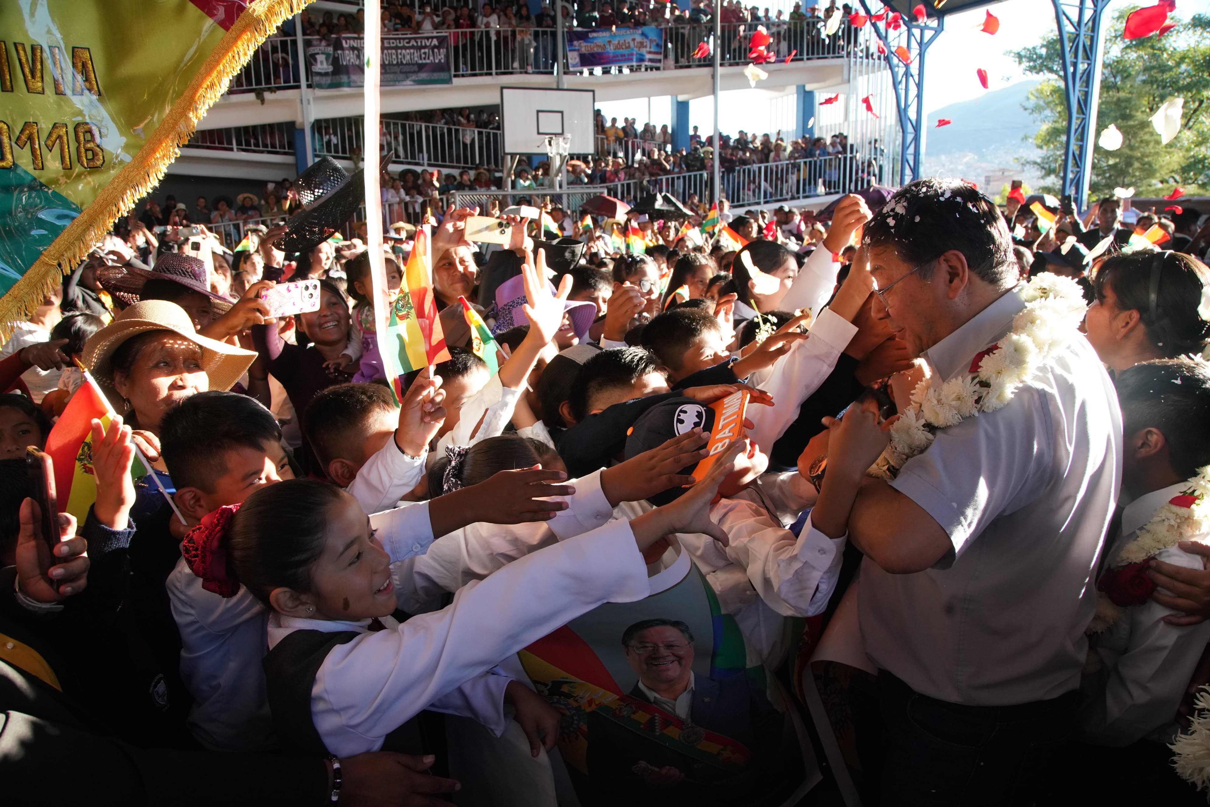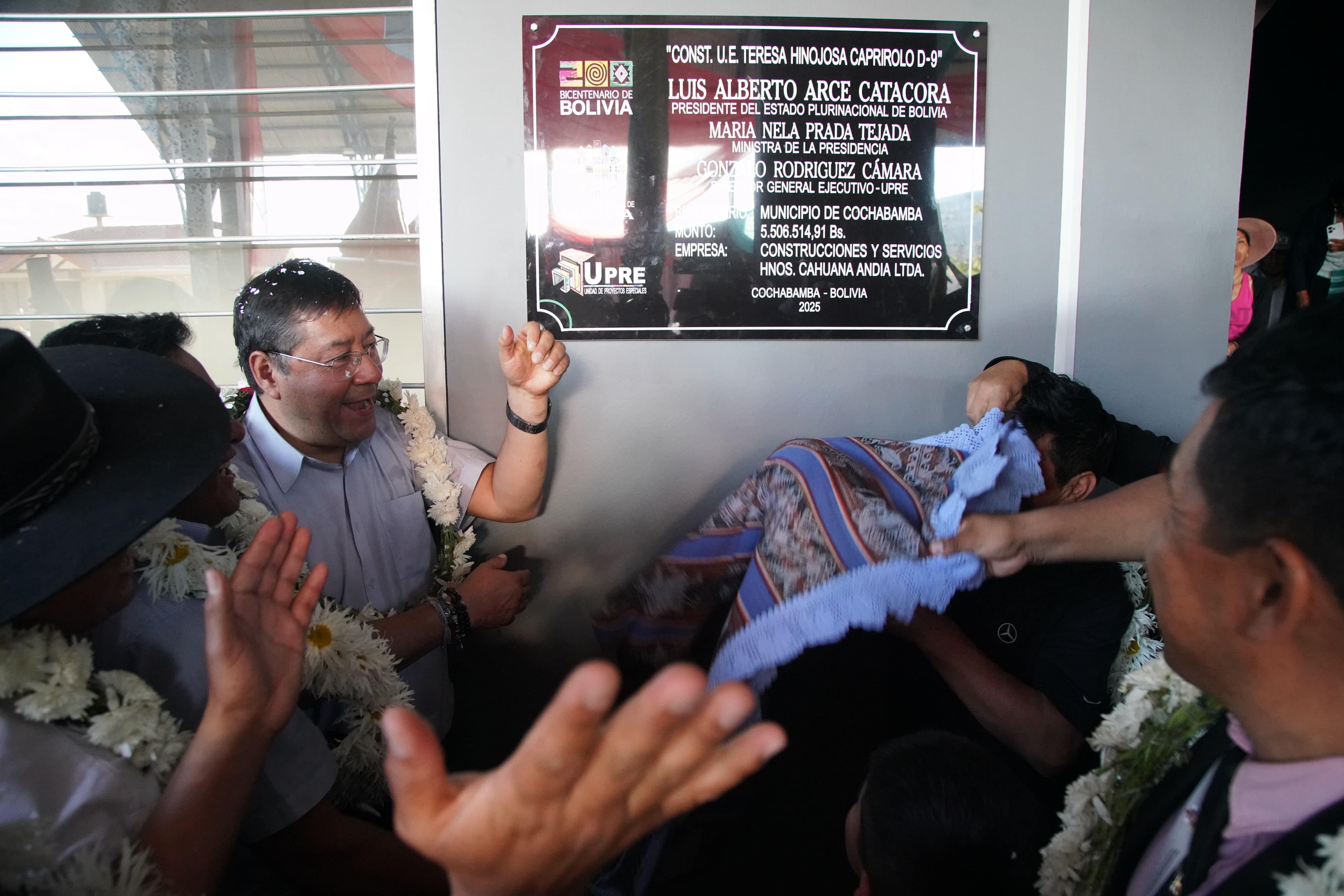 El Presidente del Estado Plurinacional de Bolivia, Luis Arce Catacora, ch'alla y entrega la Unidad Educativa "Teresa Hinojoza Caprirolo" en el municipio de CochabambaUsuario ABIGalería Fotográfica 03 Febrero 2025 Visto: 377ShareTwittearshare with Whatsappshare with TelegramFuente Comunicación Presidencial AnteriorSiguiente