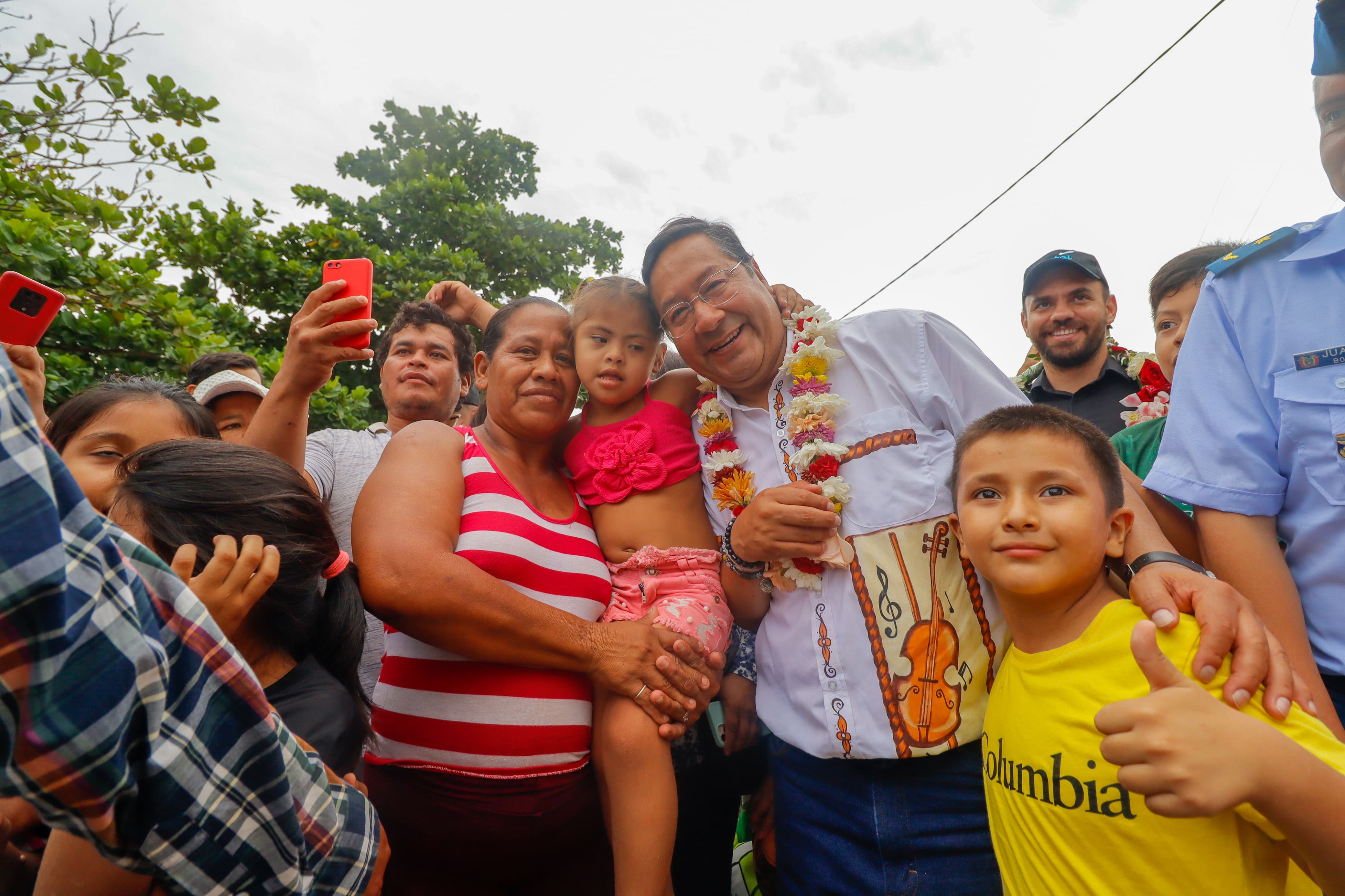 El Presidente del Estado Plurinacional de Bolivia, Luis Arce Catacora, realiza chˈalla y entrega de la Plataforma de Atención, Archivo y Vivienda en La Administración de Aduana Frontera, en el municipio de Puerto Suárez, Santa Cruz