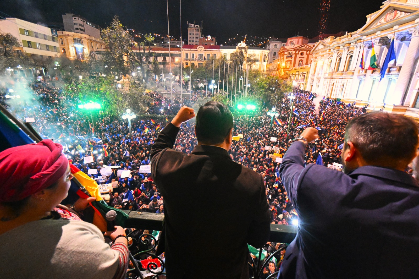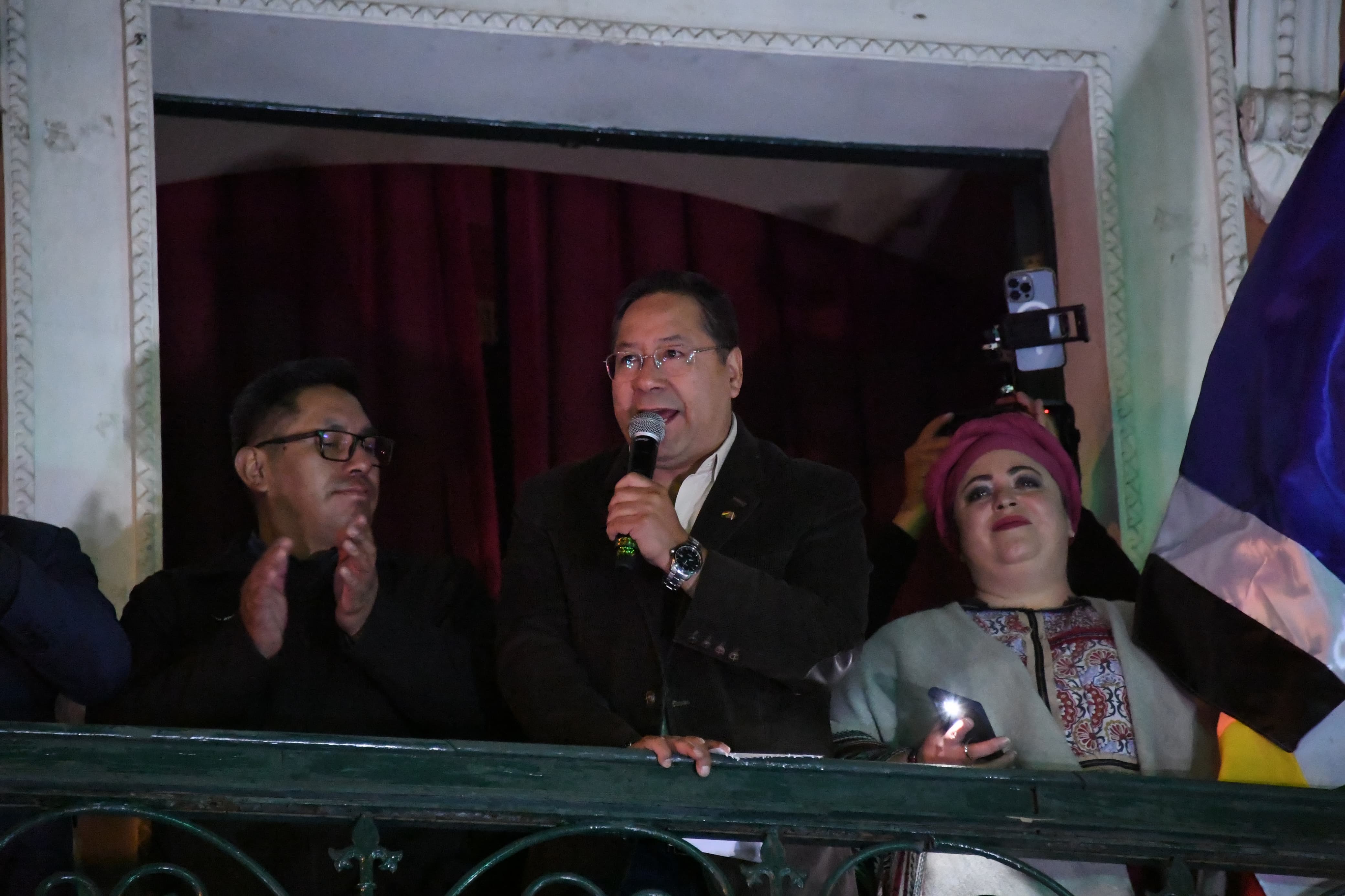 El presidente Luis Arce se dirige al pueblo boliviano en la plaza Murillo de La Paz, donde sectores sociales respaldan su gestión Usuario ABIGalería Fotográfica 14 Mayo 2025 Visto: 420ShareTwittearshare with Whatsappshare with TelegramFotos: ABI / Josué Cortéz Fotos: Comunicación Presidencial AnteriorSiguiente