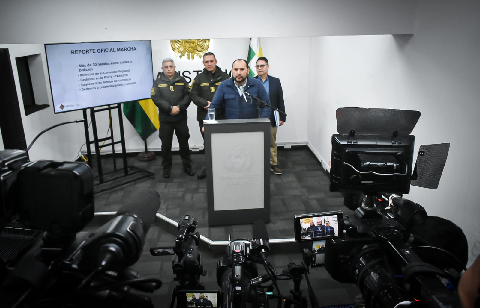 El ministro de Gobierno, Roberto Ríos, en conferencia de prensa, sobre los hechos acontecidos en Llallagua, Norte PotosiUsuario ABIGalería Fotográfica 11 Junio 2025 Visto: 485ShareTwittearshare with Whatsappshare with TelegramFotos Ministerio de Gobierno AnteriorSiguiente