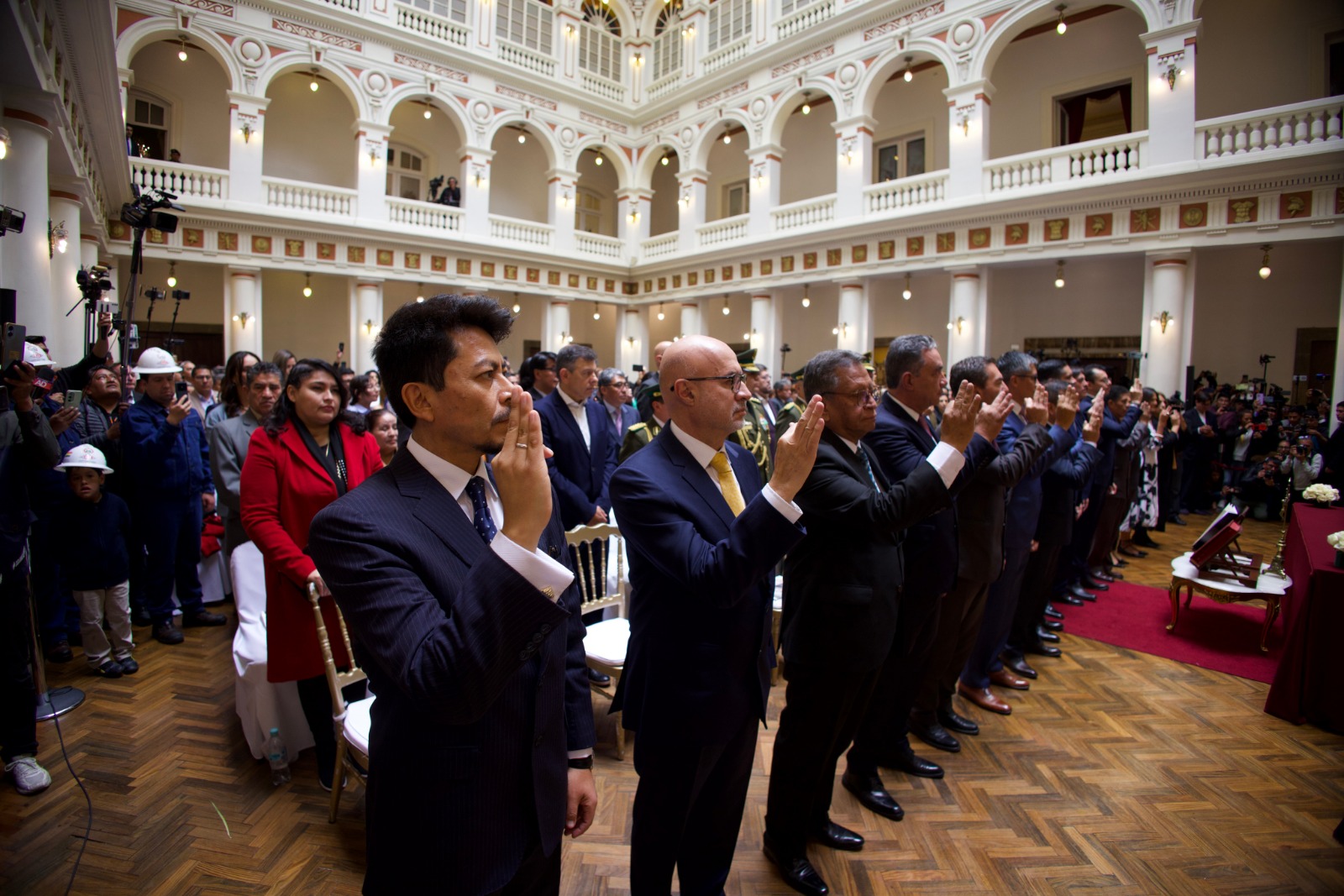 Juramento del nuevo Gabinete MinisterialGustavo TiconaGalería Fotográfica 09 Noviembre 2025 Visto: 328ShareTwittearshare with Whatsappshare with TelegramFotos: Josué Cortez/Patricio Crooker AnteriorSiguiente