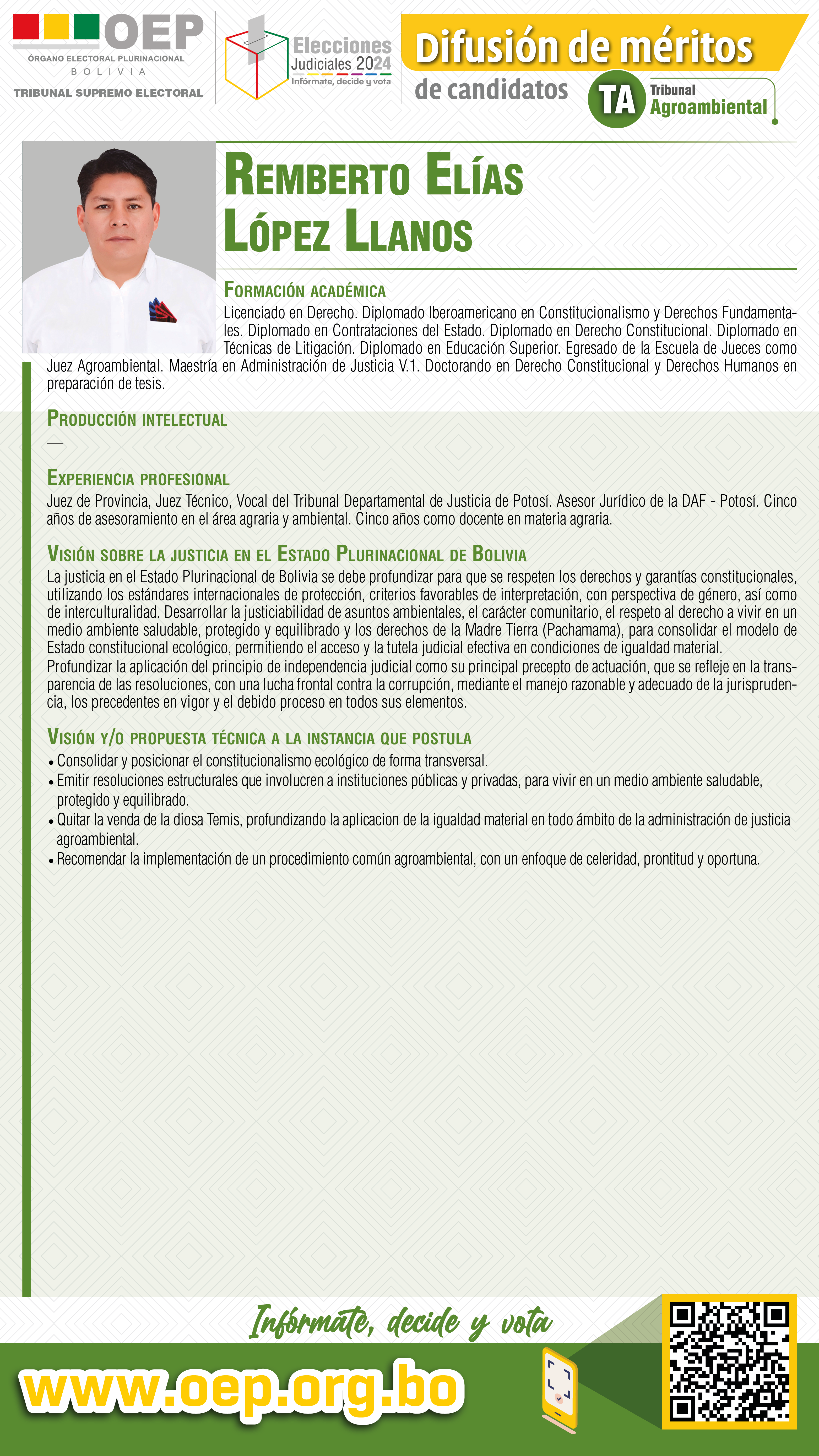 ELECCIONES JUDICIALES: Conozca al candidato al Tribunal Agroambiental, Remberto Elías López Llanos
