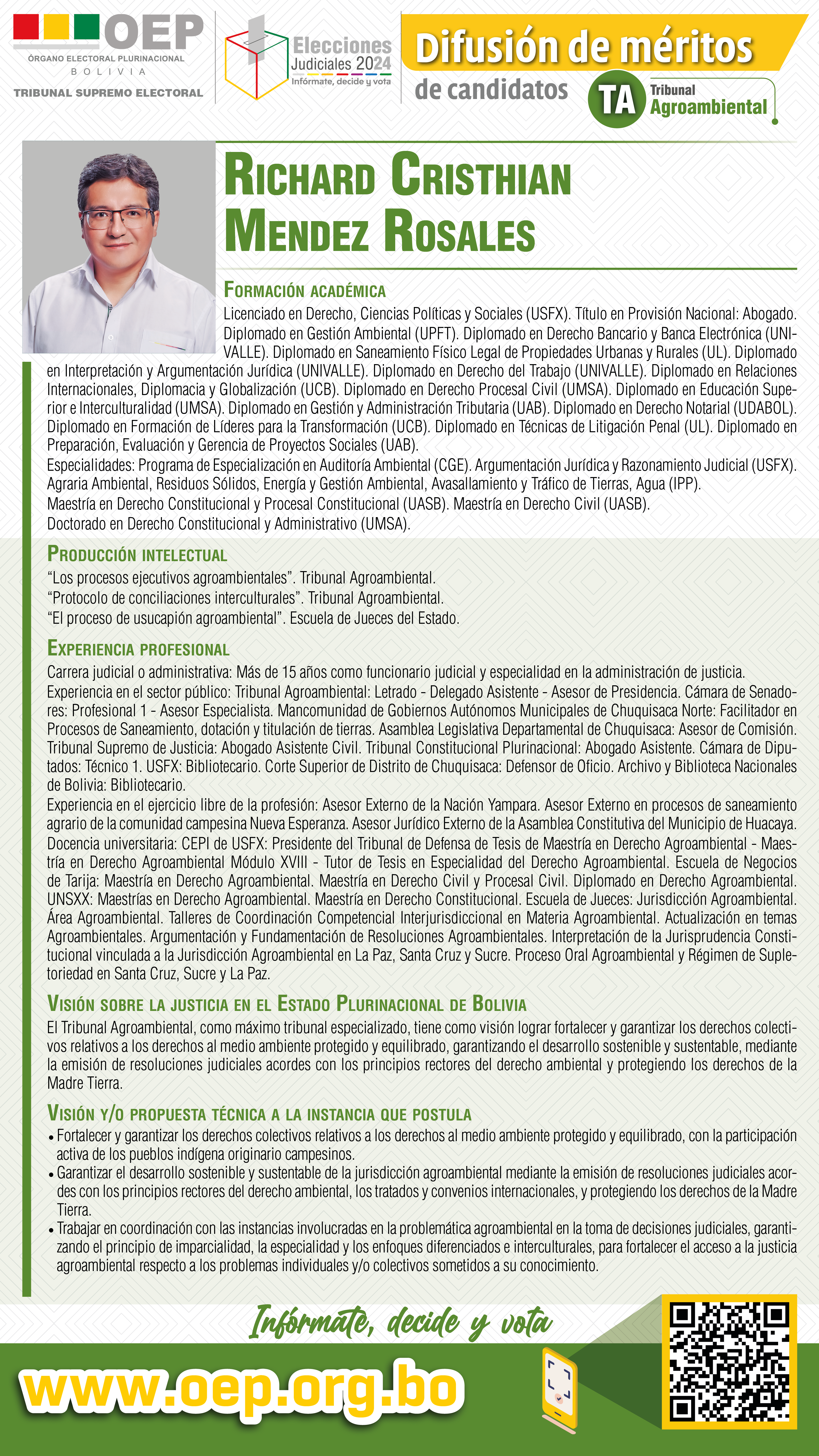 ELECCIONES JUDICIALES: Conozca al candidato al Tribunal Agroambiental, Richard Cristhian Mendez Rosales