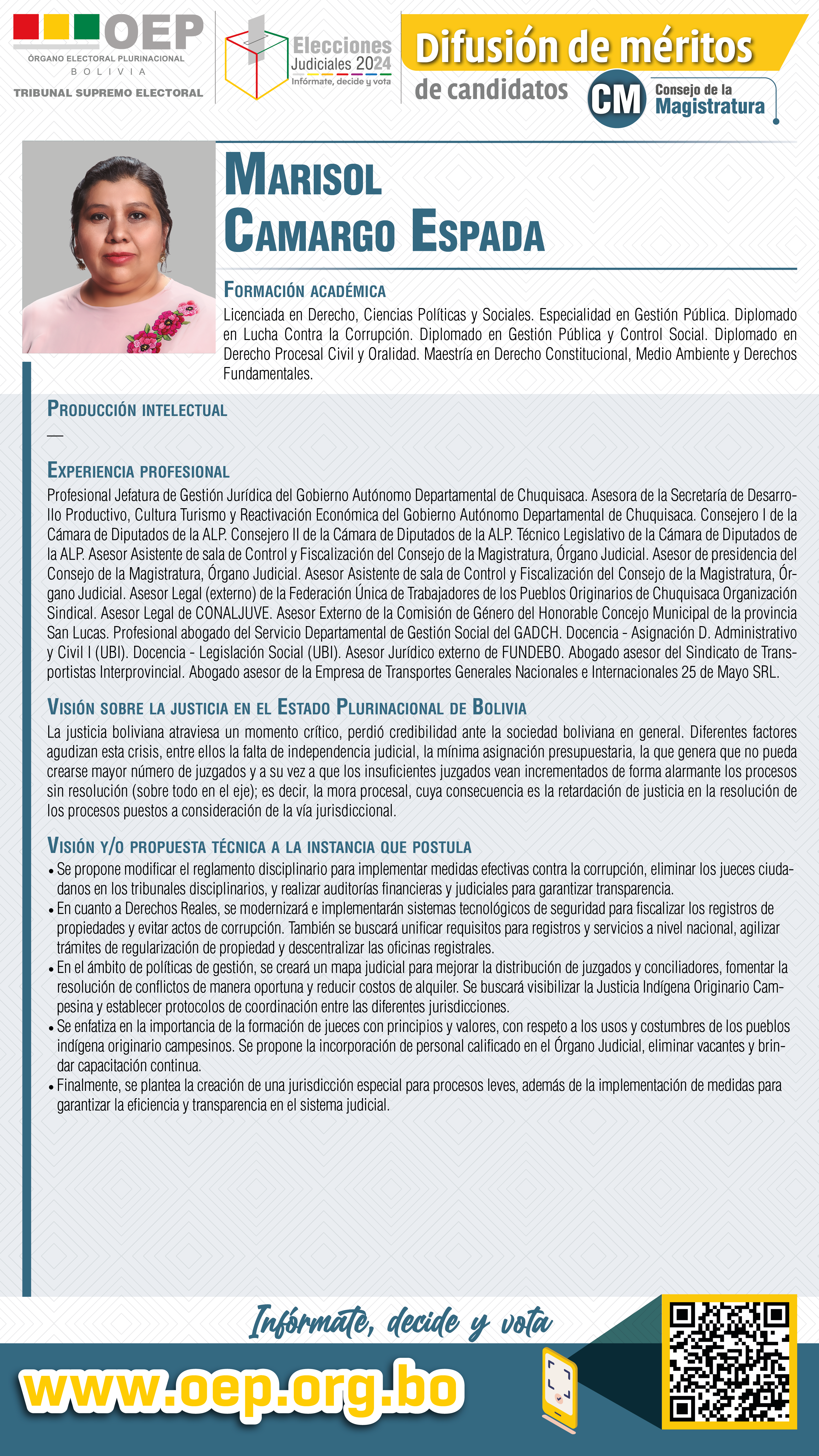 ELECCIONES JUDICIALES: Conozca a la candidata al Consejo de la Magistratura, Marisol Camargo Espada