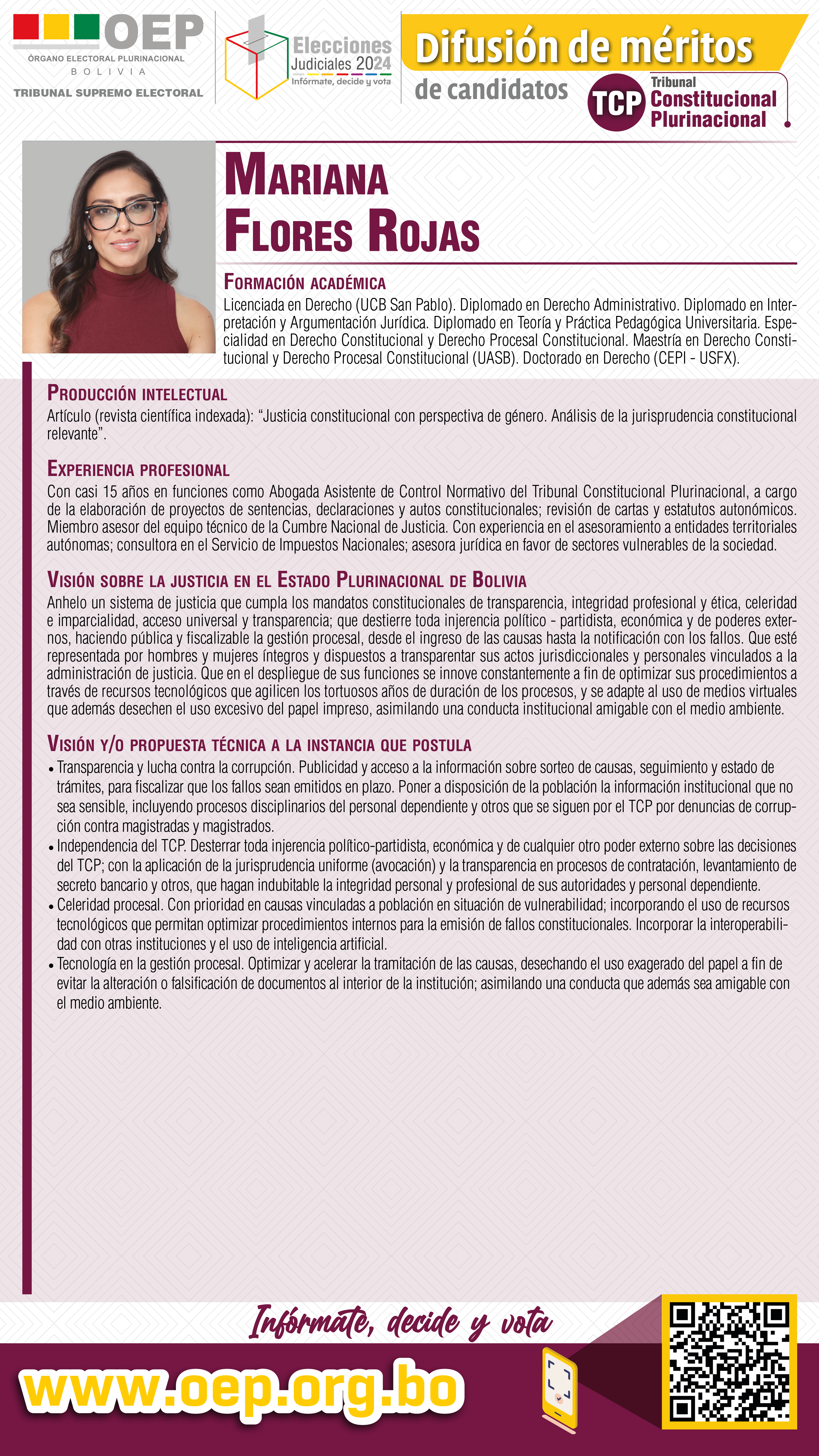 ELECCIONES JUDICIALES: Conozca a la candidata al TCP por Tarija, Mariana Flores RojasRedacción centralPolitica 14 Noviembre 2024 Visto: 929ShareTwittearshare with Whatsappshare with Telegram Leer más: ELECCIONES...