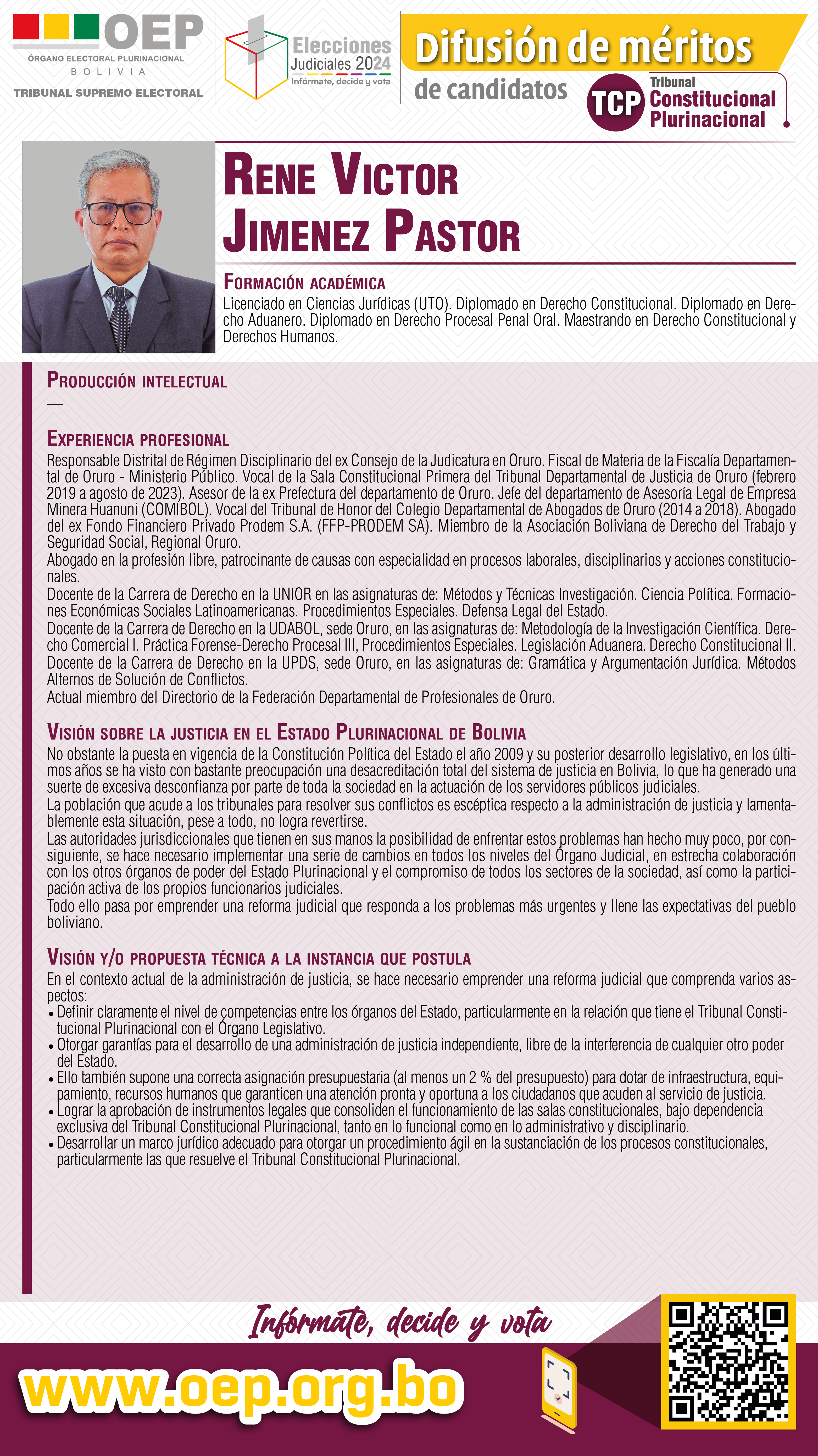 ELECCIONES JUDICIALES: Conozca al candidato al TCP por Oruro, Rene Victor Jimenez PastorRedacción centralPolitica 11 Noviembre 2024 Visto: 1352ShareTwittearshare with Whatsappshare with Telegram Leer más: ELECCIONES...