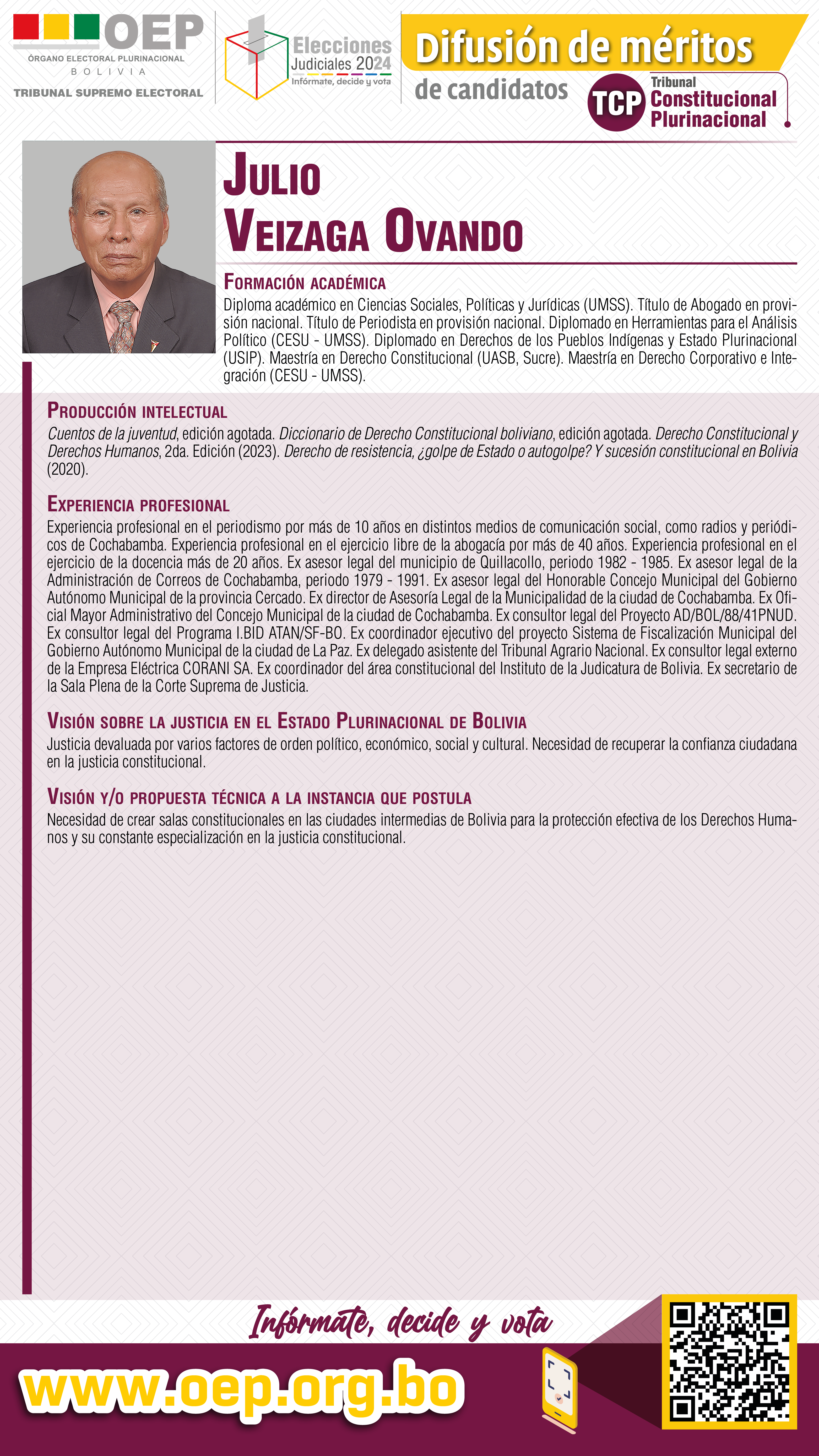 ELECCIONES JUDICIALES: Conozca al candidato al TCP por Cochabamba, Julio Veizaga OvandoRedacción centralPolitica 06 Noviembre 2024 Visto: 1308ShareTwittearshare with Whatsappshare with Telegram Leer más: ELECCIONES...