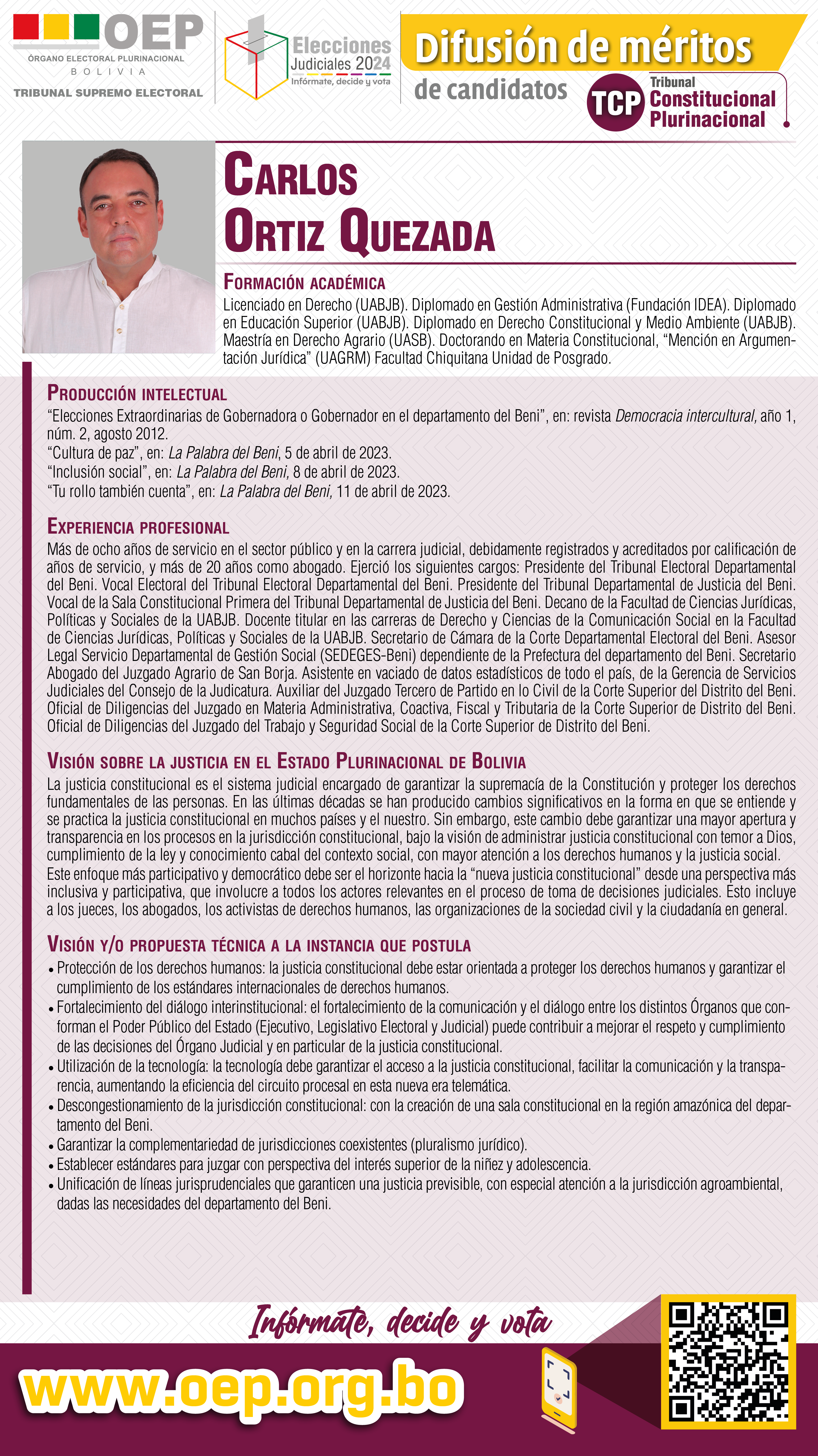 ELECCIONES JUDICIALES: Conozca al candidato al TCP por Beni, Carlos Ortiz QuezadaRedacción centralPolitica 04 Noviembre 2024 Visto: 1382ShareTwittearshare with Whatsappshare with Telegram Leer más: ELECCIONES...