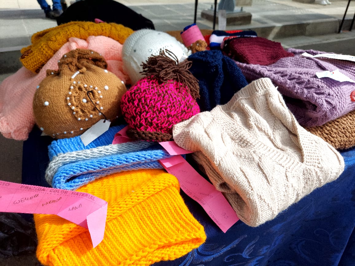 El Alto, 15 de diciembre de 2022 (ABI).- Artesanías, tejidos, muebles y una diversidad de productos elaborados por privados de libertad se comercializan en la Feria Productiva Post Penitenciaria, instalada en los predios de Mi Teleférico Rojo de la ciudad de El Alto.