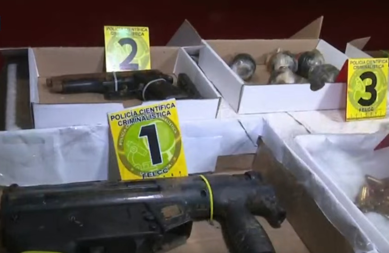 Se les encontró en su poder 5 granadas de guerra, con una onda expansiva de hasta 5 metros; y 9 cajas de municiones de guerra de distintos calibres (105 de calibre 40; cinco de calibre 44; ocho de calibre 32 y tres de calibre 7.56)