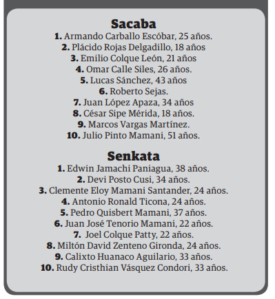 Nómina de fallecidos en Sacaba y Senkata. Datos FGE