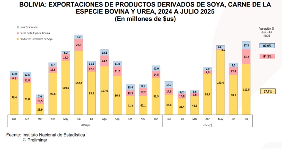 Se trata de la cifra más alta registrada en lo que va de este 2025. De enero a julio, las exportaciones de carne bovina suman $us 92,8 millones.