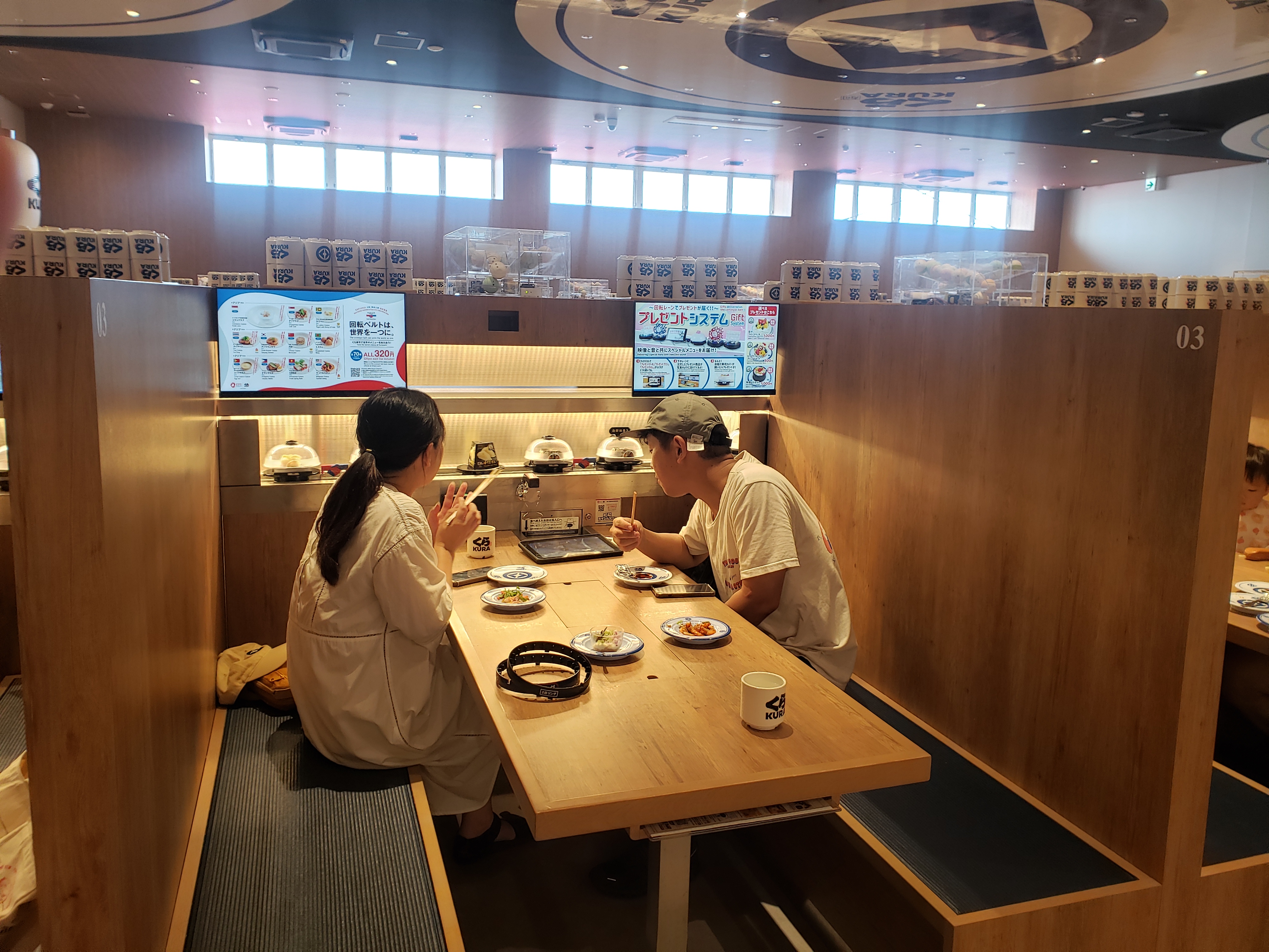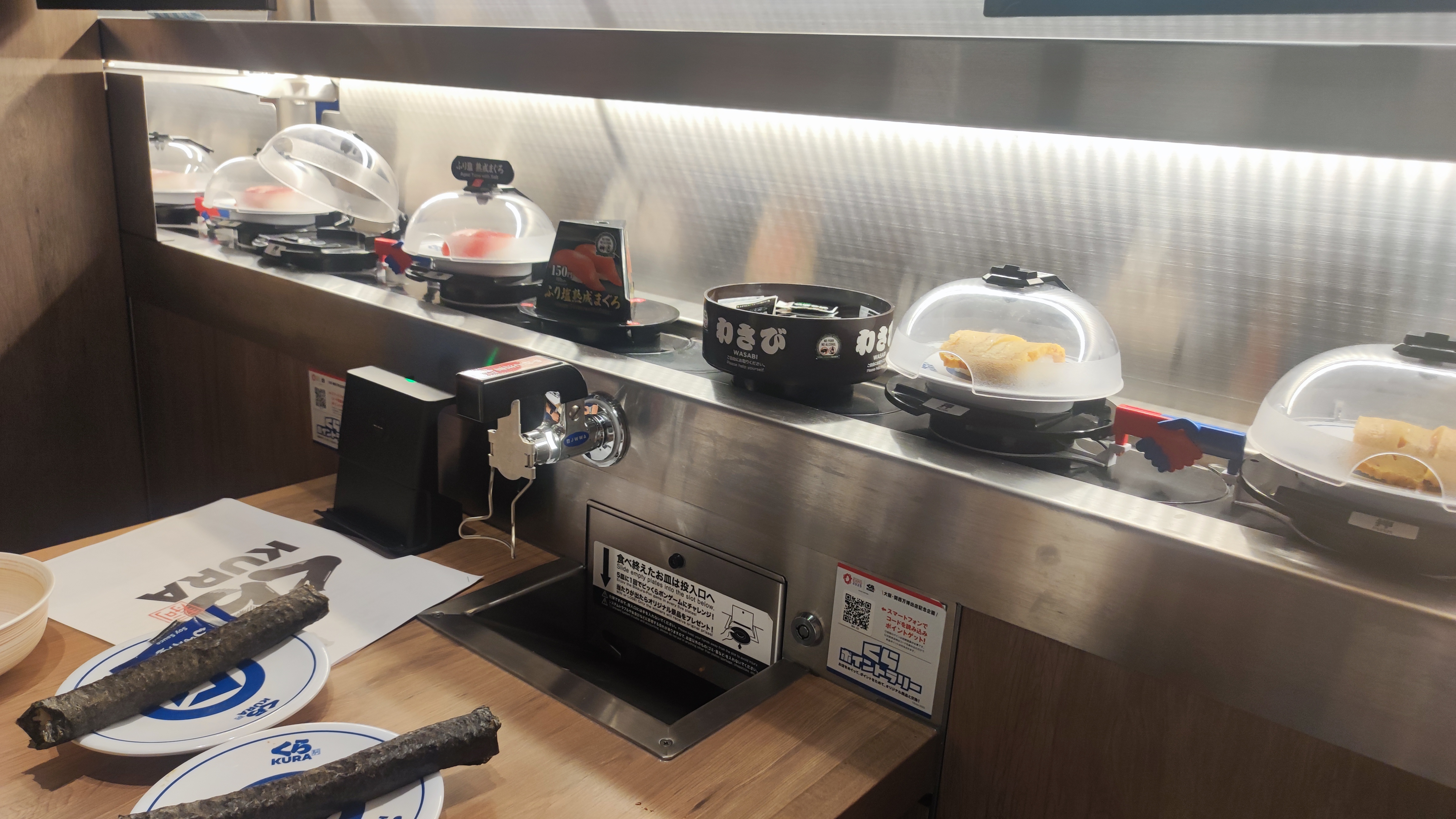 “¡Gracias por visitarnos! Ésta es una cadena de restaurantes de sushi giratorio, es una de las más famosas de Japón”, expresó amablemente uno de los responsables del afamado Kura Sushi en una entrevista exclusiva con la ABI.