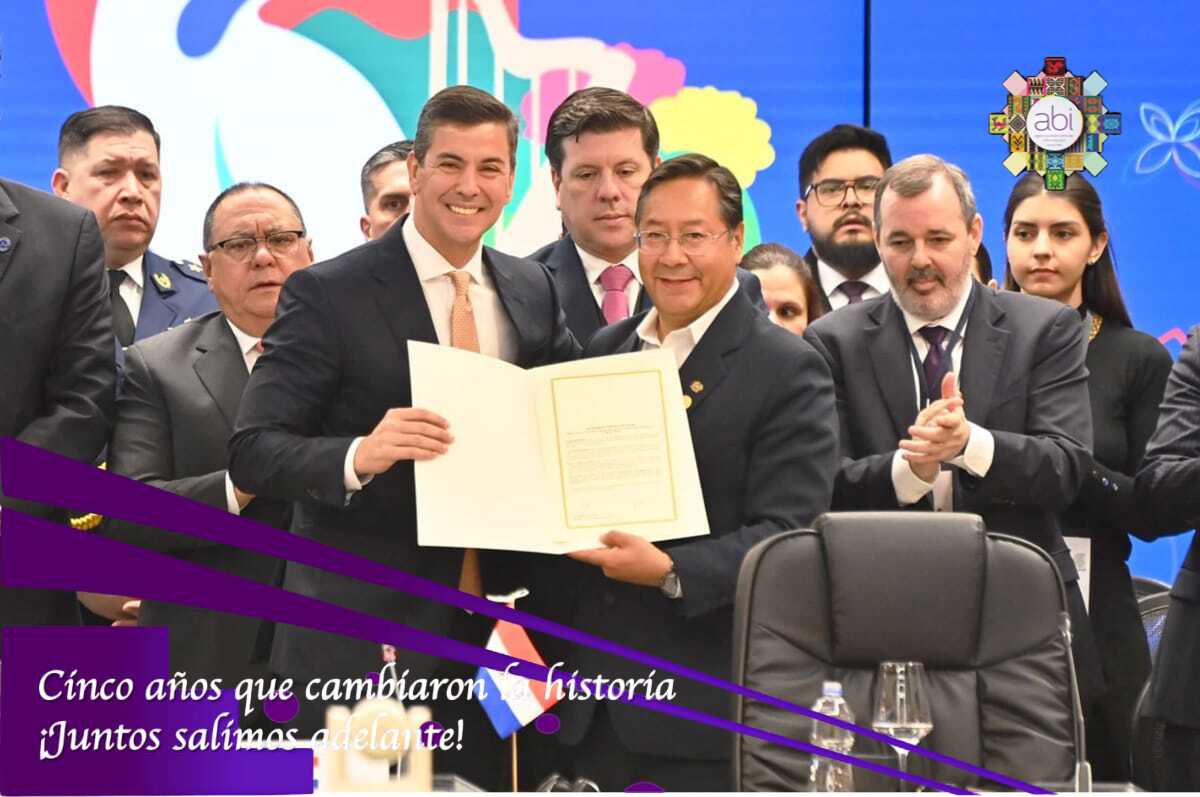 Días después, el 9 de julio, durante la 64° Cumbre de Jefes de Estado del Mercosur y Estados Asociados, desarrollada en Asunción, Paraguay, el presidente Arce entregó a su similar de Paraguay, Santiago Peña, el Instrumento de Ratificación del Protocolo de Adhesión al bloque.
