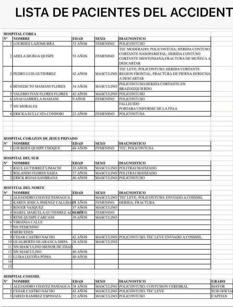 Además, anunció una campaña de donación de sangre este sábado desde las 08:00 en el banco de sangre del complejo de Miraflores, para apoyar a los pacientes con trauma severo y hemorragias, haciendo un llamado a la solidaridad de la población.