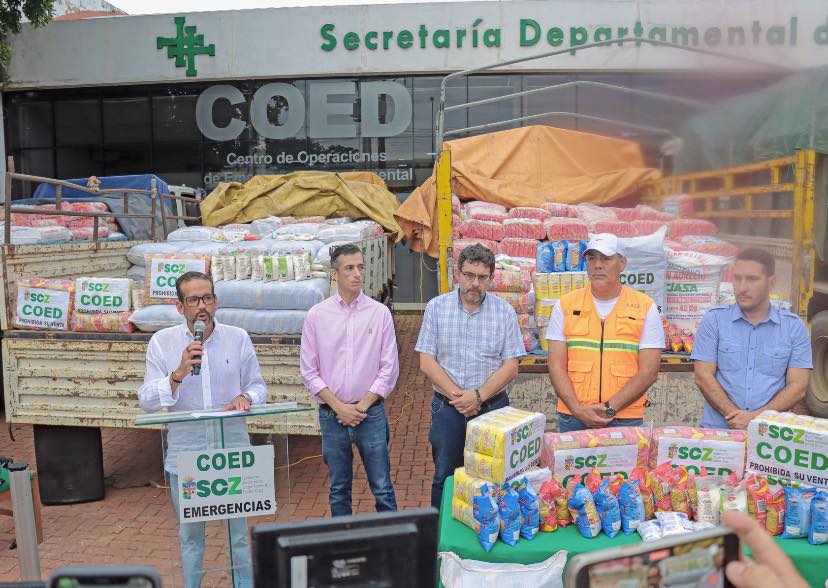 Ante esta situación, la Gobernación de Santa Cruz, a través del COED, envió más de 42 toneladas de ayuda humanitaria a los municipios de Samaipata (Achiras), Fernández Alonso y El Torno, destinadas a 1.965 familias afectadas.