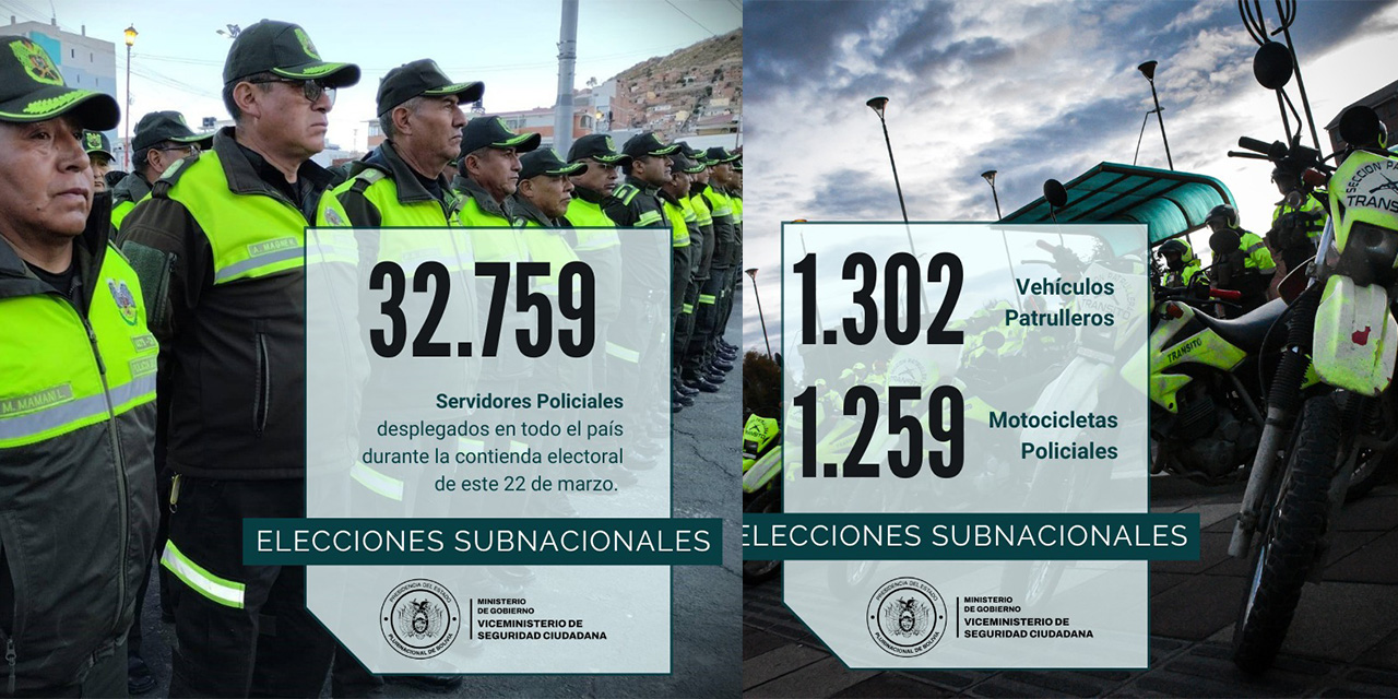 La Paz, 18 de marzo de 2026 (ABI). – Un total de 32.759 efectivos de la Policía Boliviana se movilizará en todo el país este domingo 22 de marzo para garantizar la seguridad durante la jornada electoral, informó este miércoles el Viceministerio de Seguridad Ciudadana.
